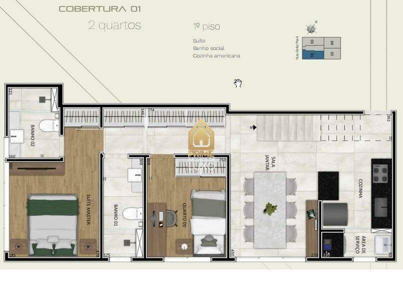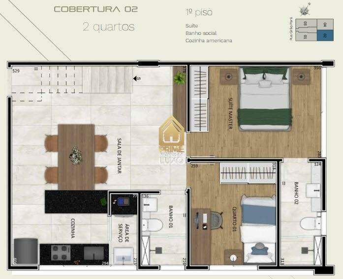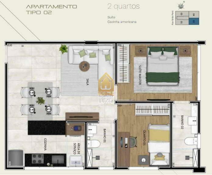 - 2 Quartos com várias opções de plantas (1 Quarto com sala ampliada, 1 Quarto com closet e home Office etc.)