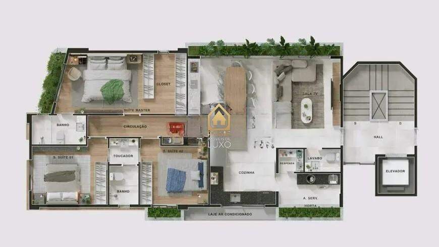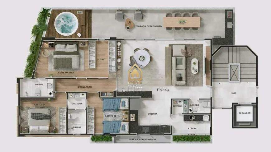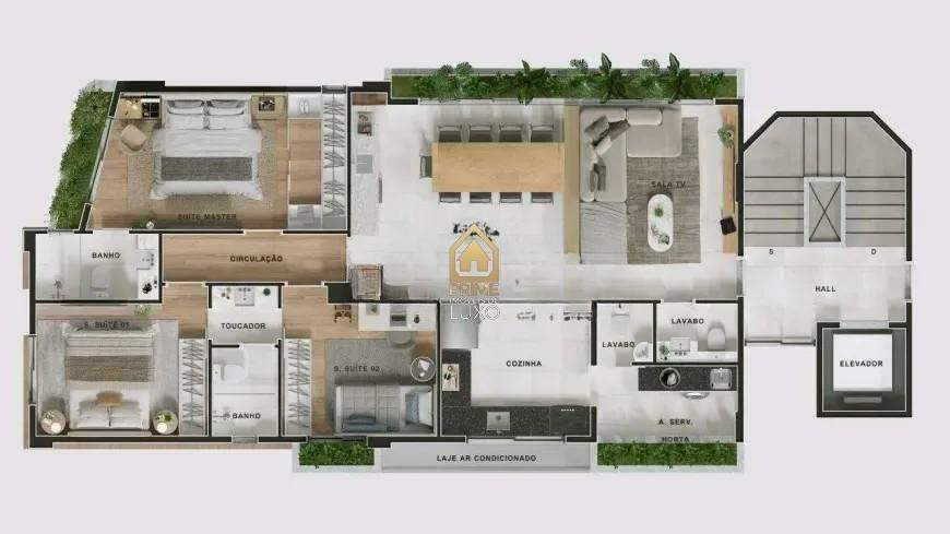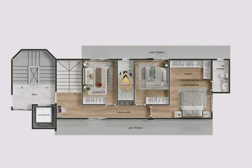 3 quartos, sendo 1 suíte máster com espaço para closet e banho;