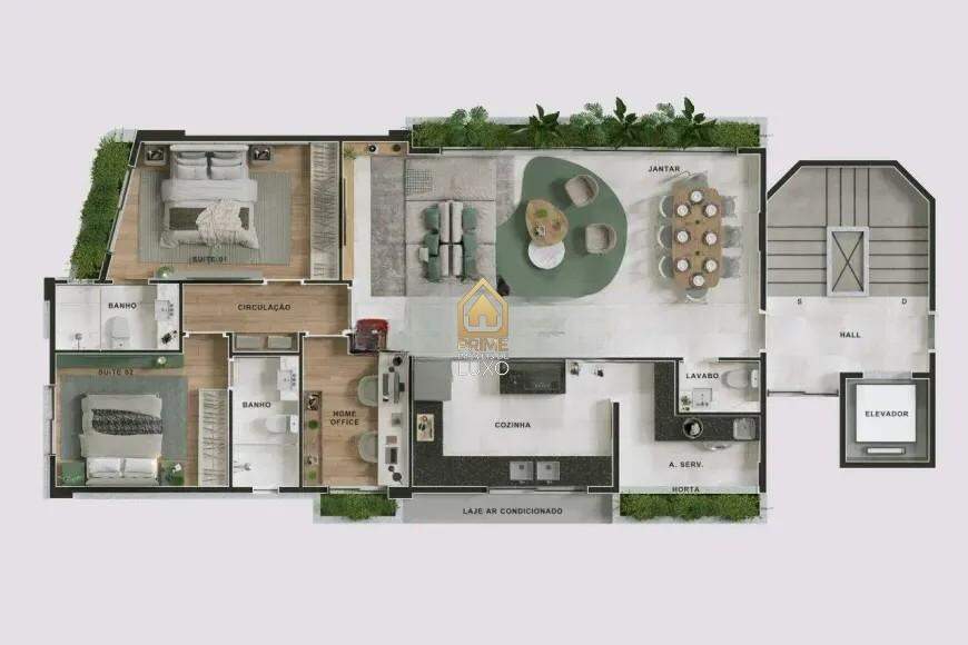 Prédio revestido com porcelanato aerado, com apenas 7 apartamentos, com muito verde e sem área de lazer, com plantas flexíveis.