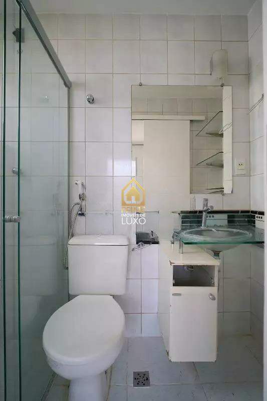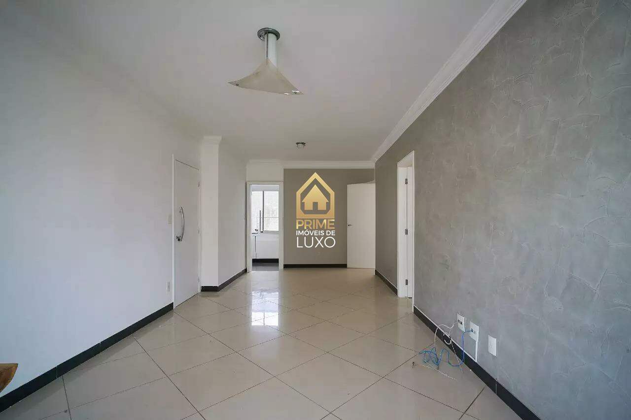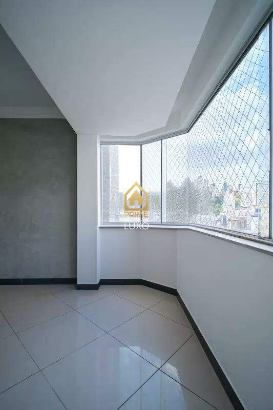 Com 90m² de área útil, este imóvel conta com uma sala ampla para dois ambientes com piso em porcelanato, varanda integrada e fechamento em vidro, garantindo maior ventilação e luminosidade natural.