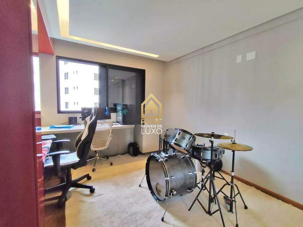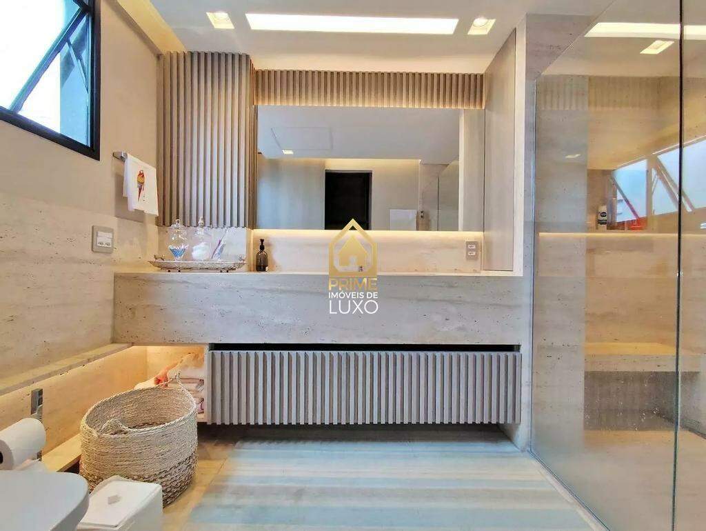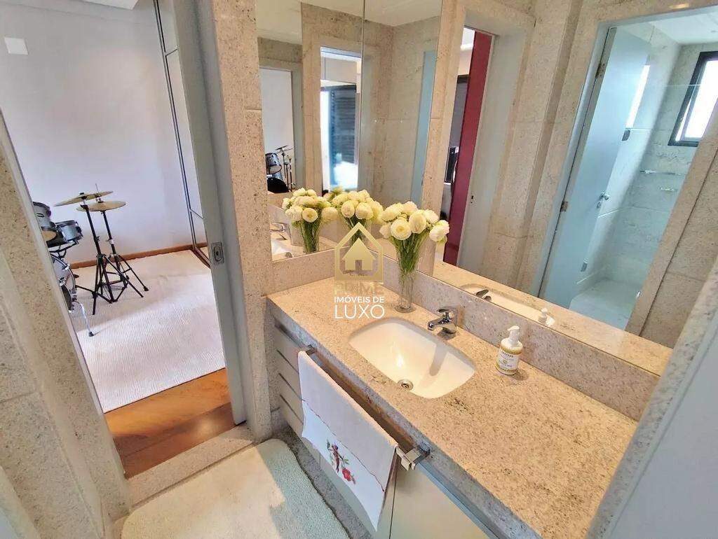 Além disso, o apartamento possui acabamentos de alto padrão como piso em granito, teto rebaixado com sistema de iluminação e sonorização.