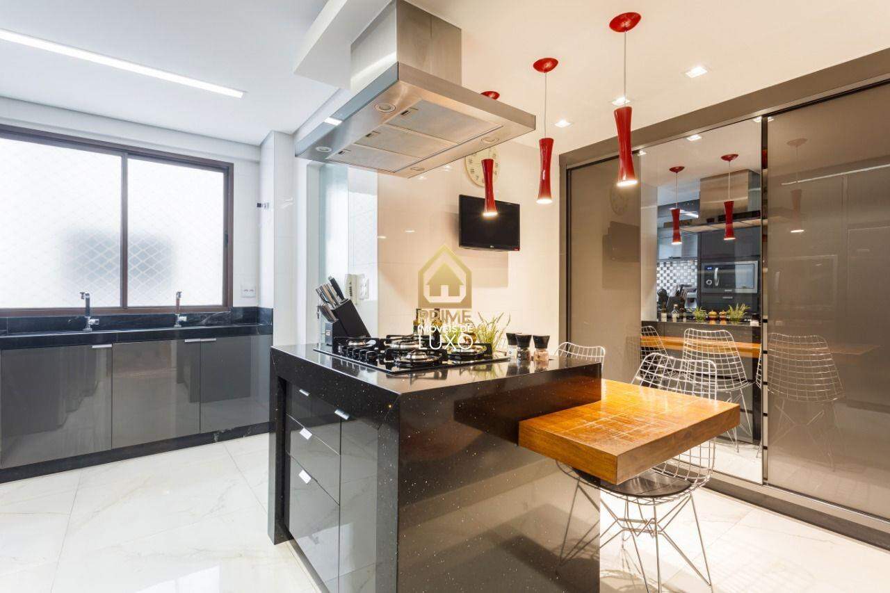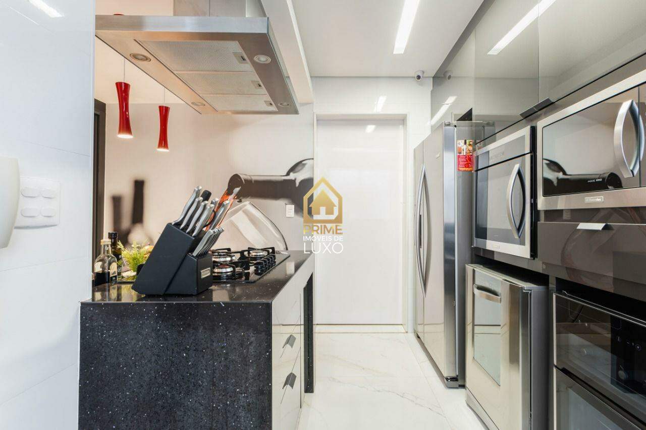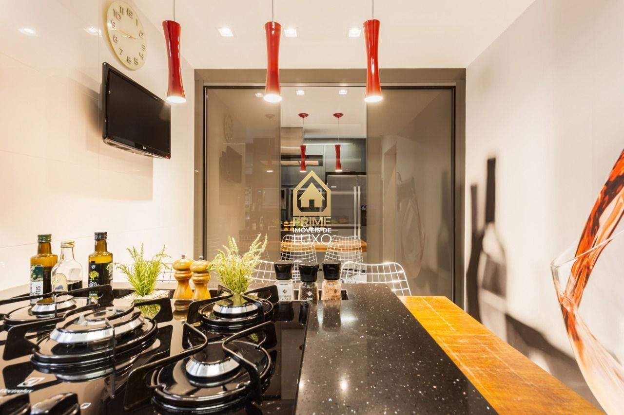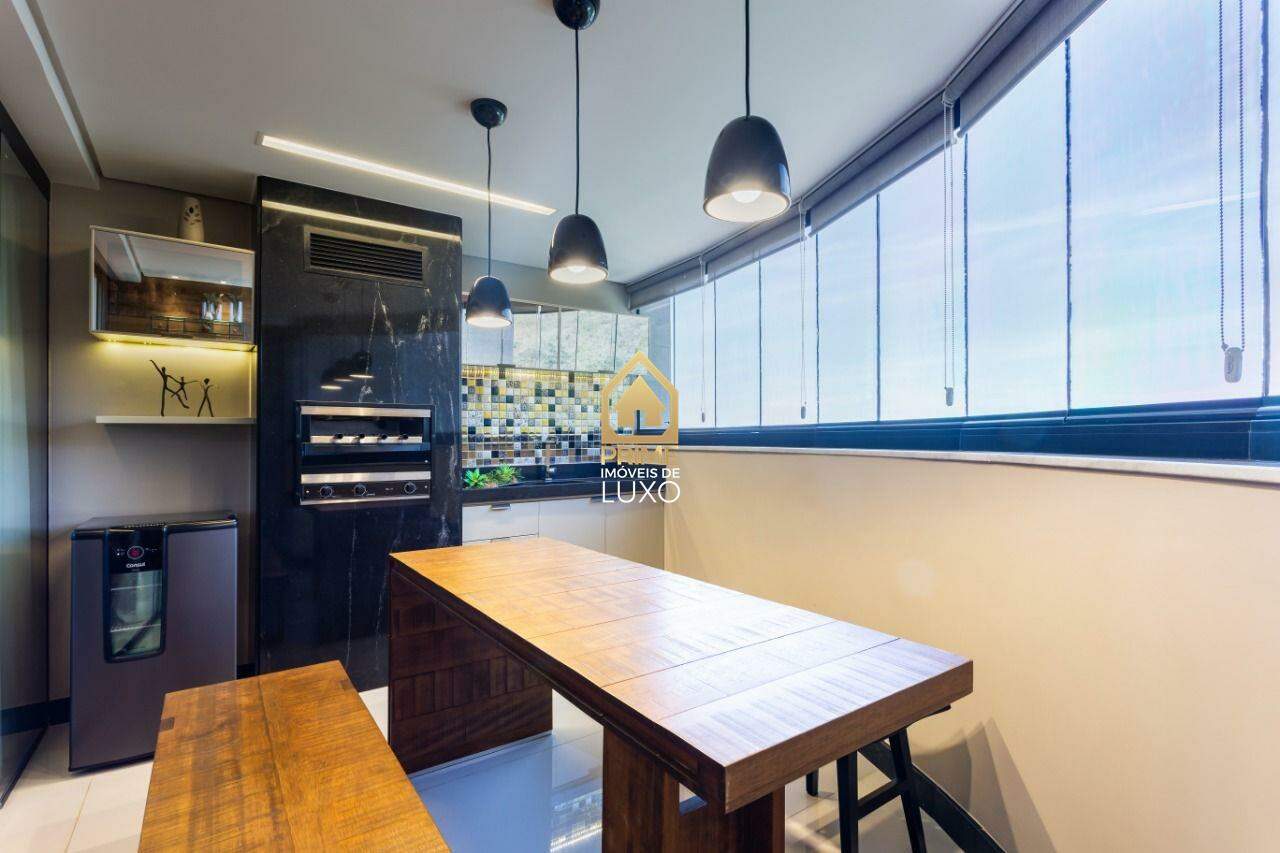 Com 140m² de área útil, este imóvel conta com 3 suítes, 4 banheiros, sala de estar, hidromassagem, cozinha americana, varanda, closet e está totalmente mobiliado. Além disso, possui elevador e 3 vagas de garagem.