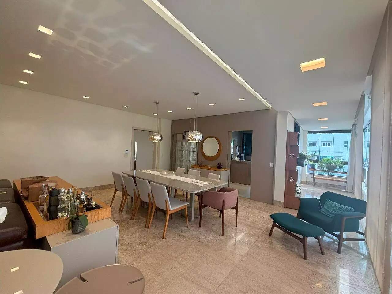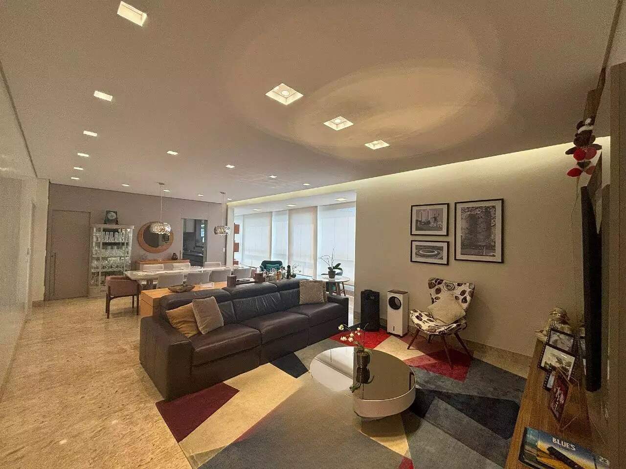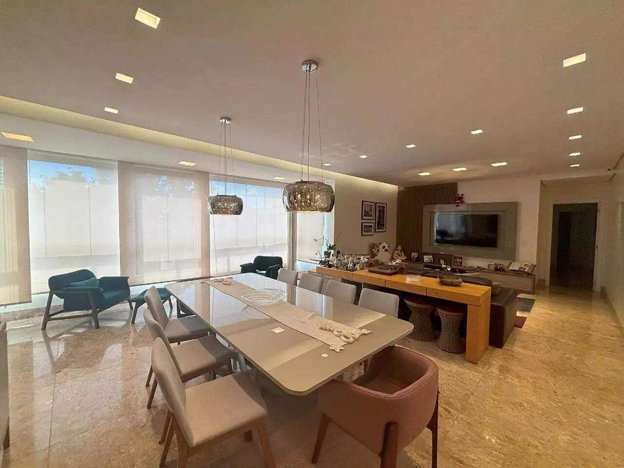Com uma área útil de 190m², esse imóvel conta com uma ampla sala de estar integrada à varanda, lavabo, piso em mármore, projeto de iluminação, persianas automatizadas e ar-condicionado.