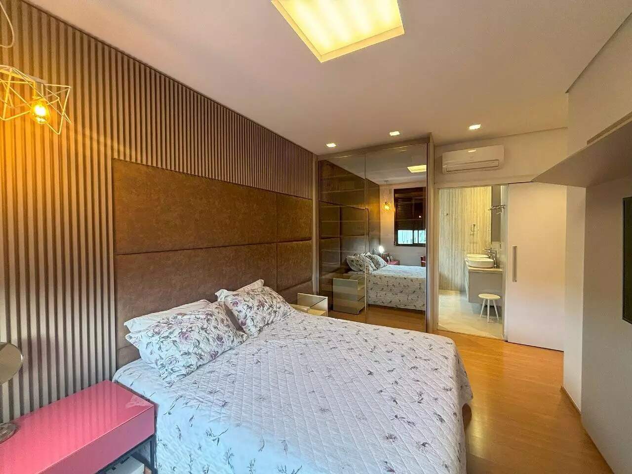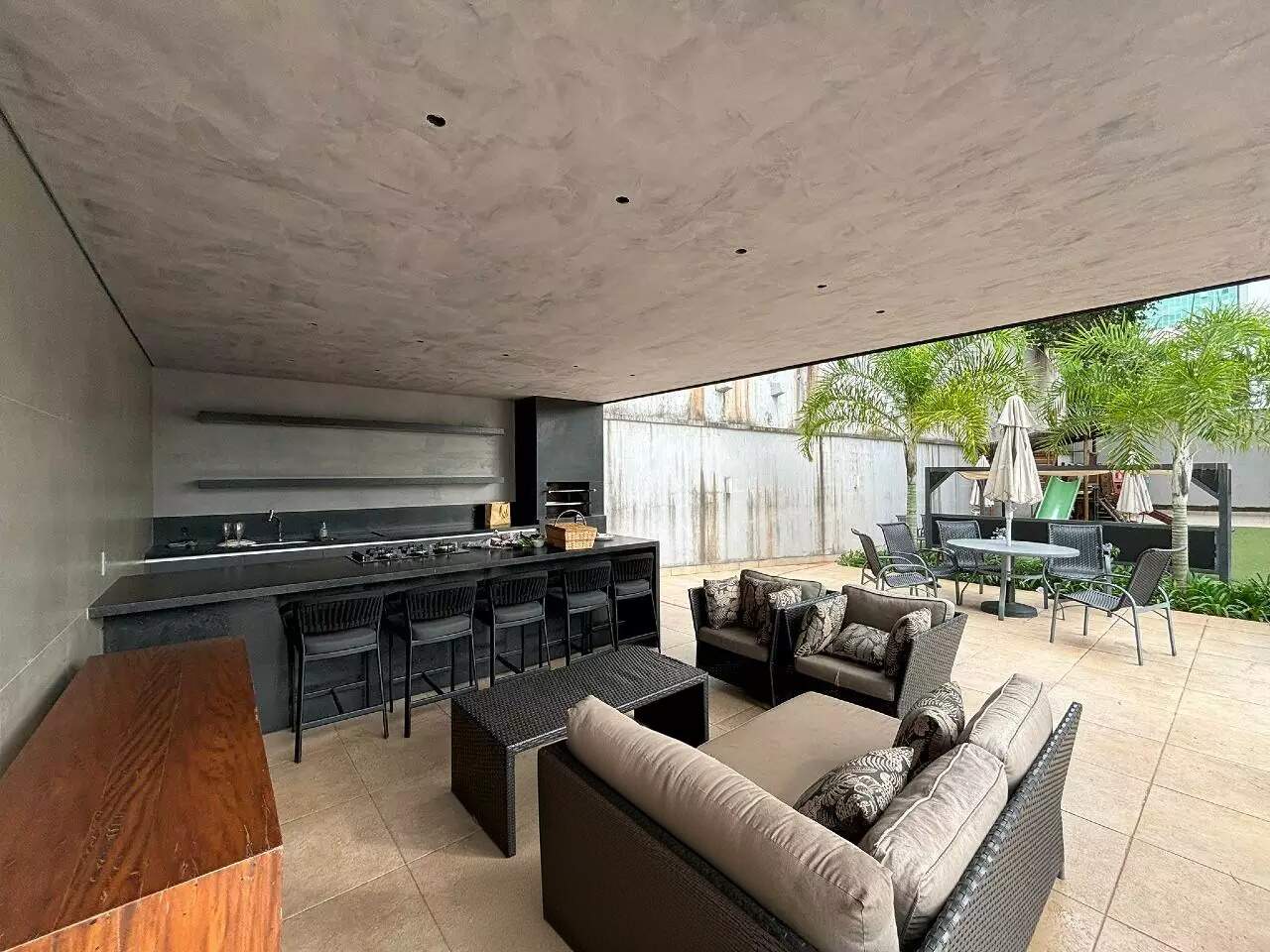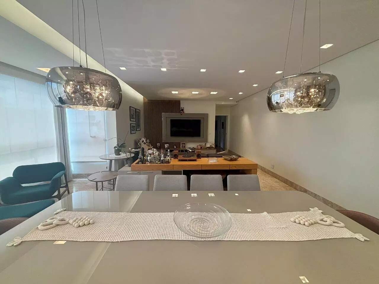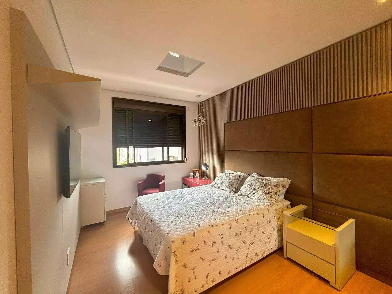 Com uma área útil de 190m², esse imóvel conta com uma ampla sala de estar integrada à varanda, lavabo, piso em mármore, projeto de iluminação, persianas automatizadas e ar-condicionado.