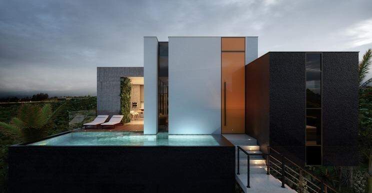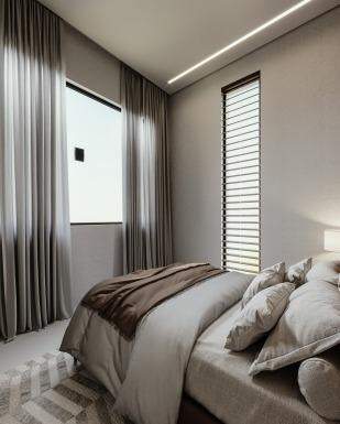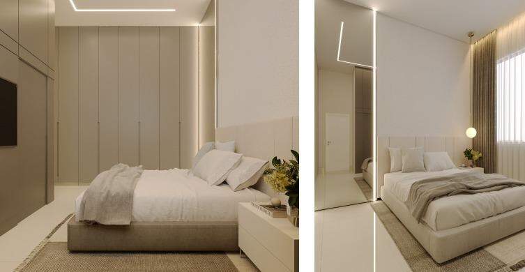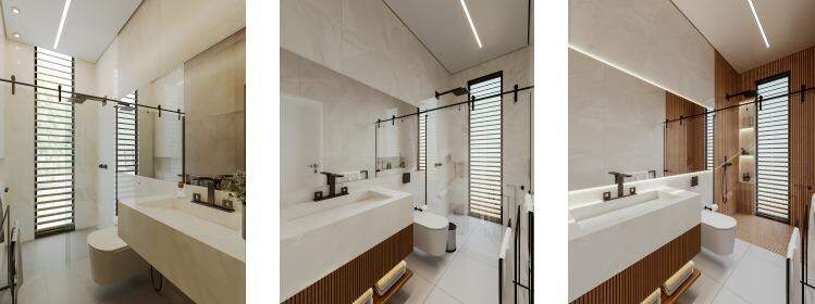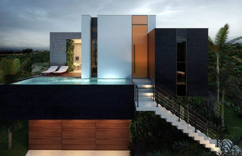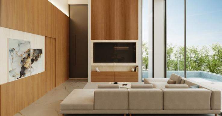 A casa está prevista para entrega em maio de 2025 e possui acabamento em porcelanato. A área de lazer é composta por piscina, jardim e área gourmet.