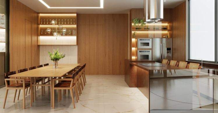 Com 420m² de área construída, esta belíssima residência conta com 4 dormitórios, sendo todos suítes, 5 banheiros, lavabo, área de serviço, cozinha americana, despensa, varanda e escritório. Além disso, possui uma ampla sala de estar e sala de jantar.