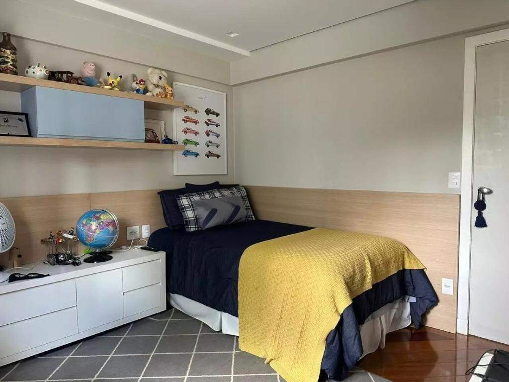 O imóvel conta com marcenaria planejada em todos os ambientes, cozinha americana, despensa e varanda integrada à sala com fechamento em cortina de vidro.