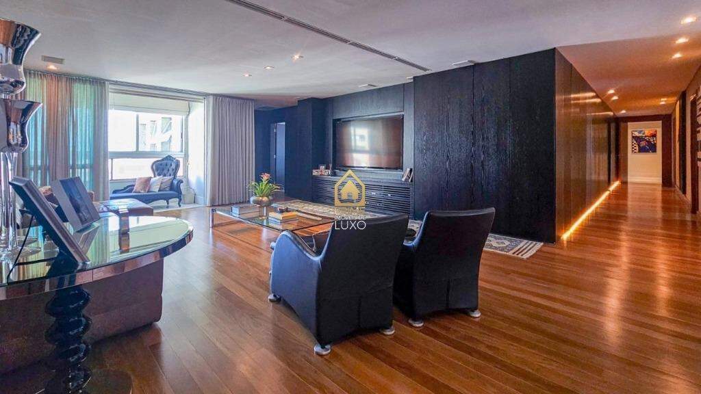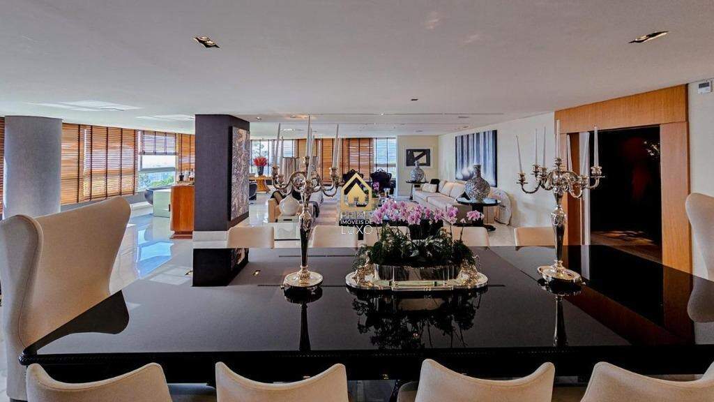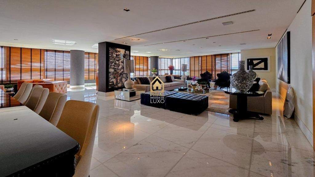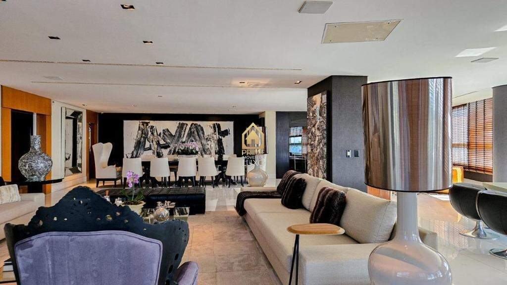 Com 593 m² de área útil, o APARTAMENTO oferece uma sala para 5 ambientes, varanda