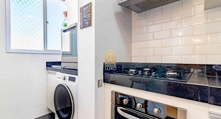Cozinha planejada com armários, fogão cooktop e forno embutido;