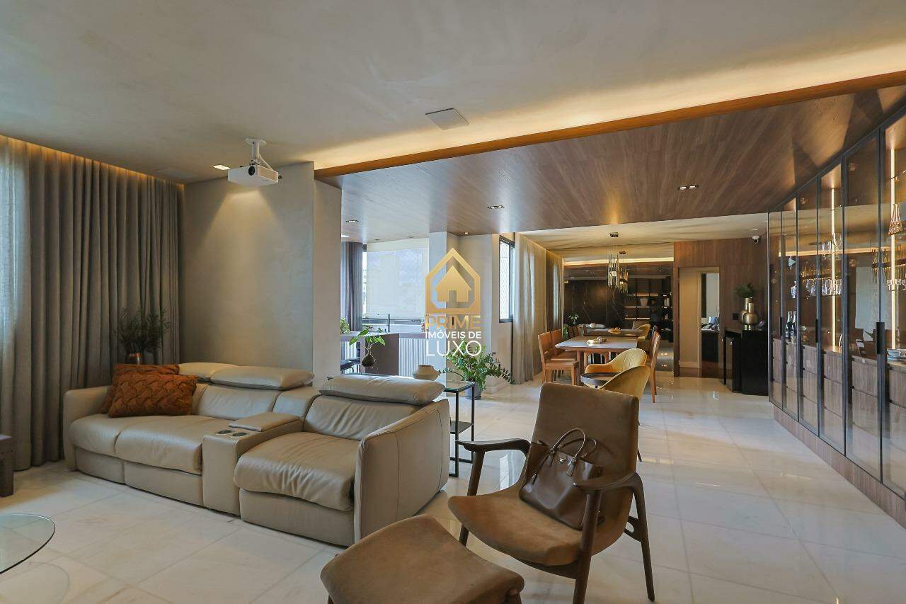 Apartamento com sala para 3 ambientes, varanda integrada, lavabo, 4 quartos sendo 3 suítes.