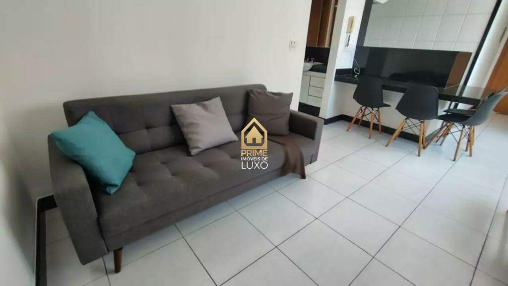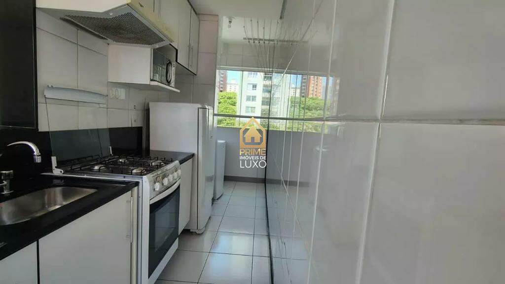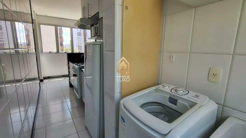 Apartamento mobiliado de 1 quarto próximo ao Shopping Diamond Mall, com sala ampla para 2 ambientes, quarto com armário e cama de casal, cozinha planejada com fogão e geladeira, área de serviço com máquina de lavar e 1 vaga coberta e demarcada.