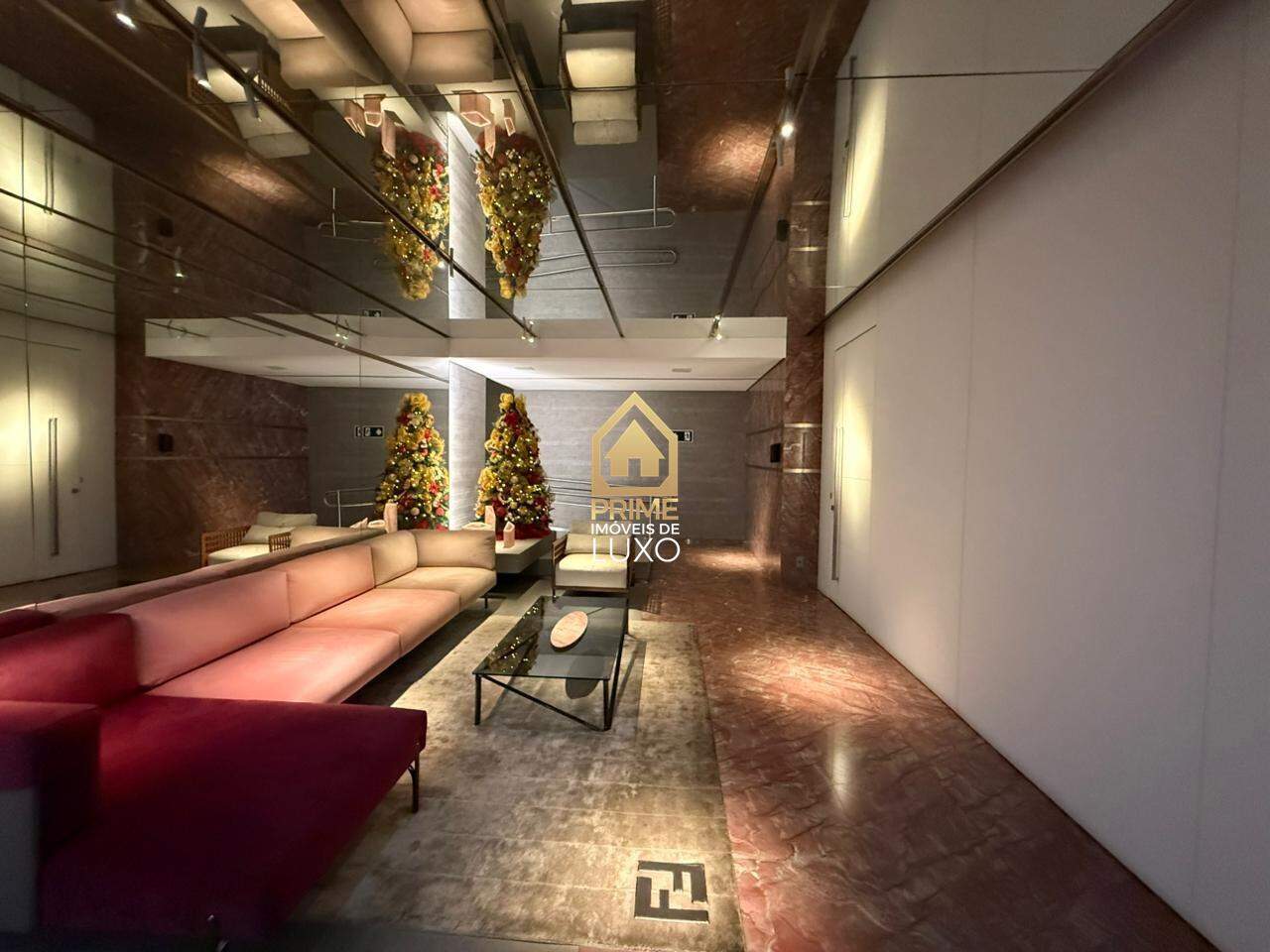 HALL: O Hall de entrada do empreendimento exibe um mobiliário Fendi, tradicional marca italiana, conhecida no mundo da moda e que, desde 1989, desenvolve móveis de prestígio e objetos de design com um estilo irretocável presente nas mais prestigiadas residências e estabelecimentos comerciais ao redor do mundo. As peças decorativas em quartzo rosa que complementam o espaço foram desenvolvidas pela artista Suka Braga.