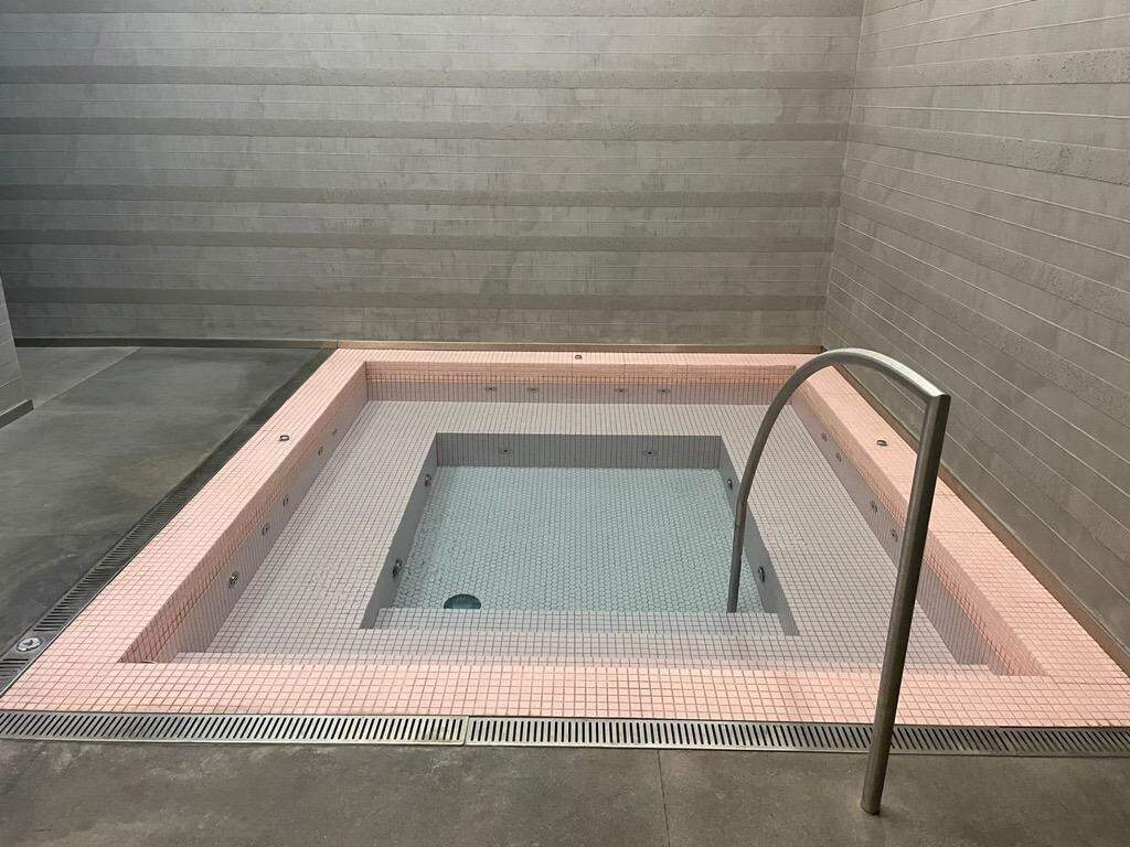 PISCINA: A piscina, de cor inédita nos projetos da Caparaó, marca a retomada do rosê nos revestimentos e remete algo antigo e moderno ao espaço, alinhado à textura de Concreto e o piso em Pedra Sabão Majestic. Semelhantemente, outro aspecto que chama atenção é a iluminação cênica do forro que evidencia o delicado desenho do gradil da casa, executado em relevo. As chaises Float da Paola Lenti trazem o conforto para o ambiente e as esquadrias em vidro permitem a entrada do verde.