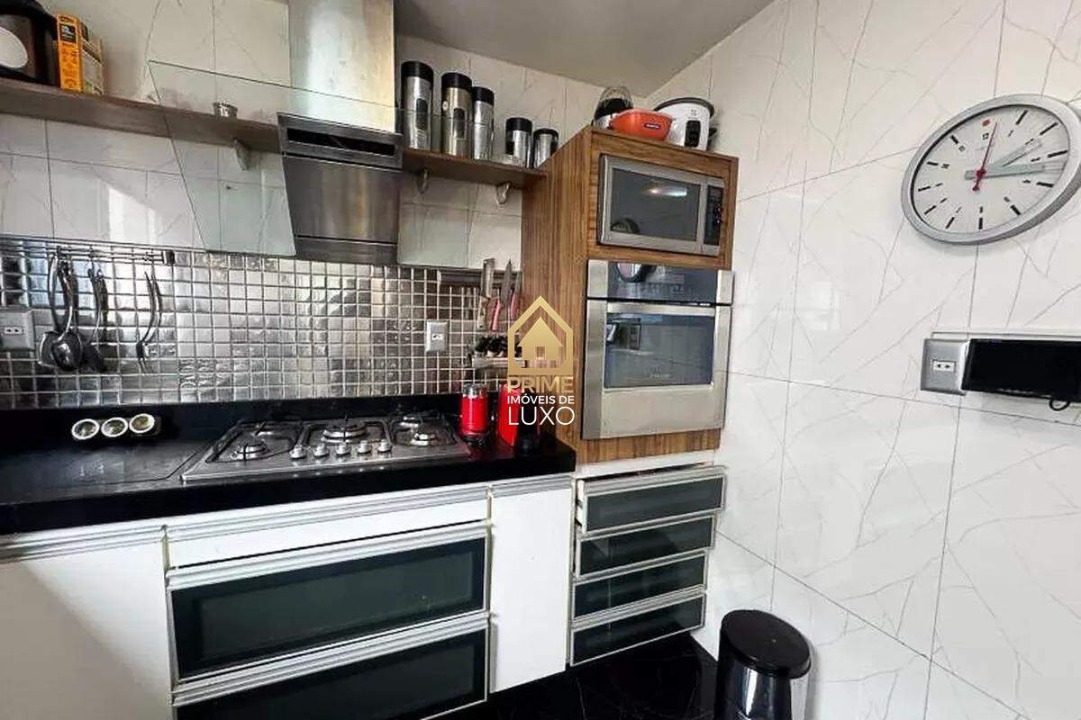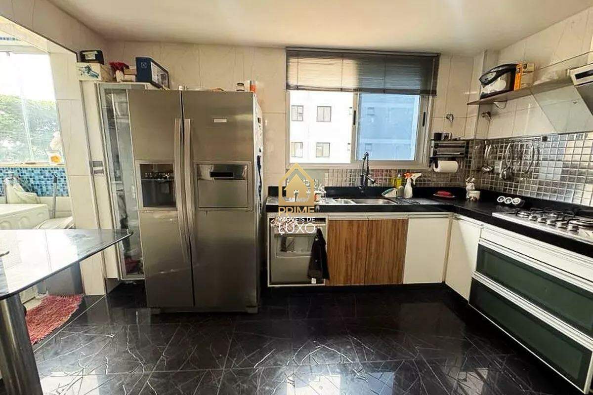 Cozinha completa com armários, geladeira, forno e fogão embutidos;