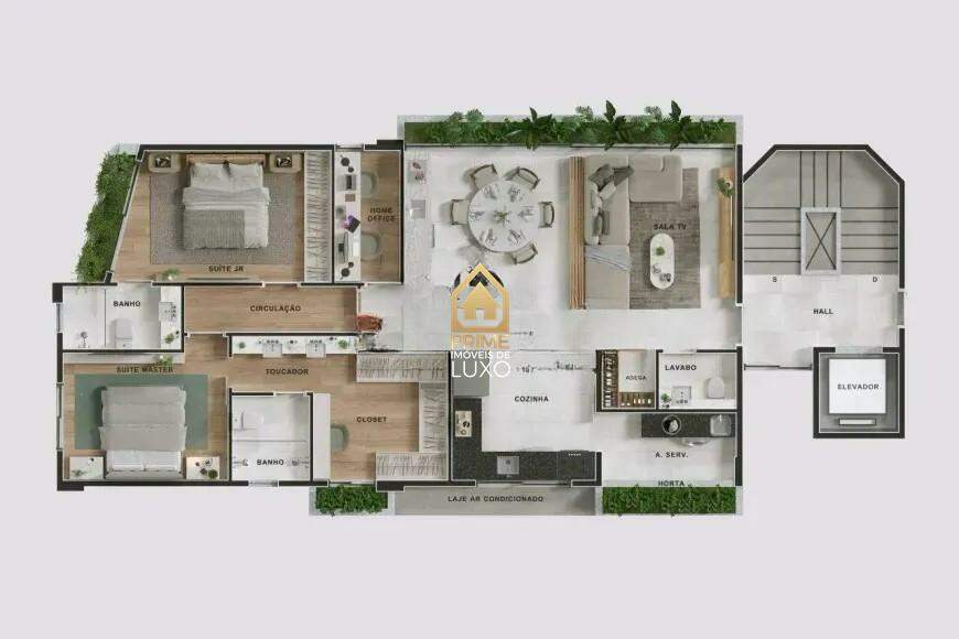 Prédio revestido com porcelanato aerado, com apenas 7 apartamentos, com muito verde e sem área de lazer, com plantas flexíveis.