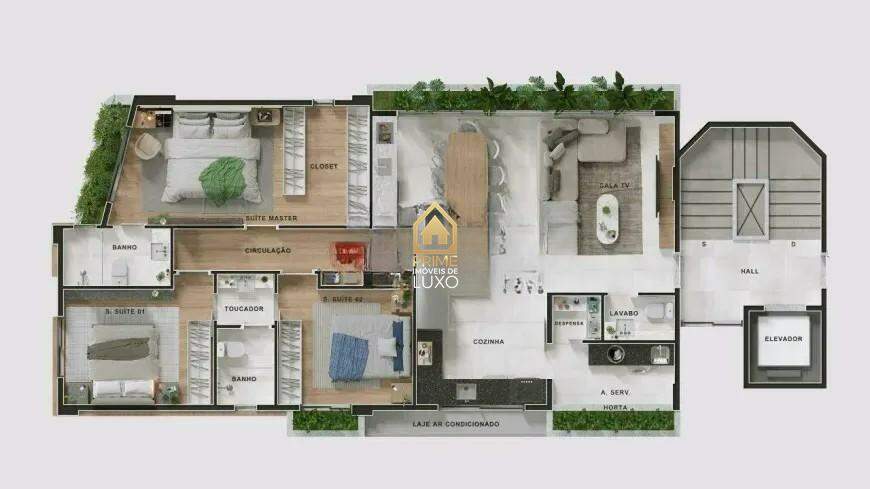 3 quartos, sendo 1 suíte máster com espaço para closet e banho;