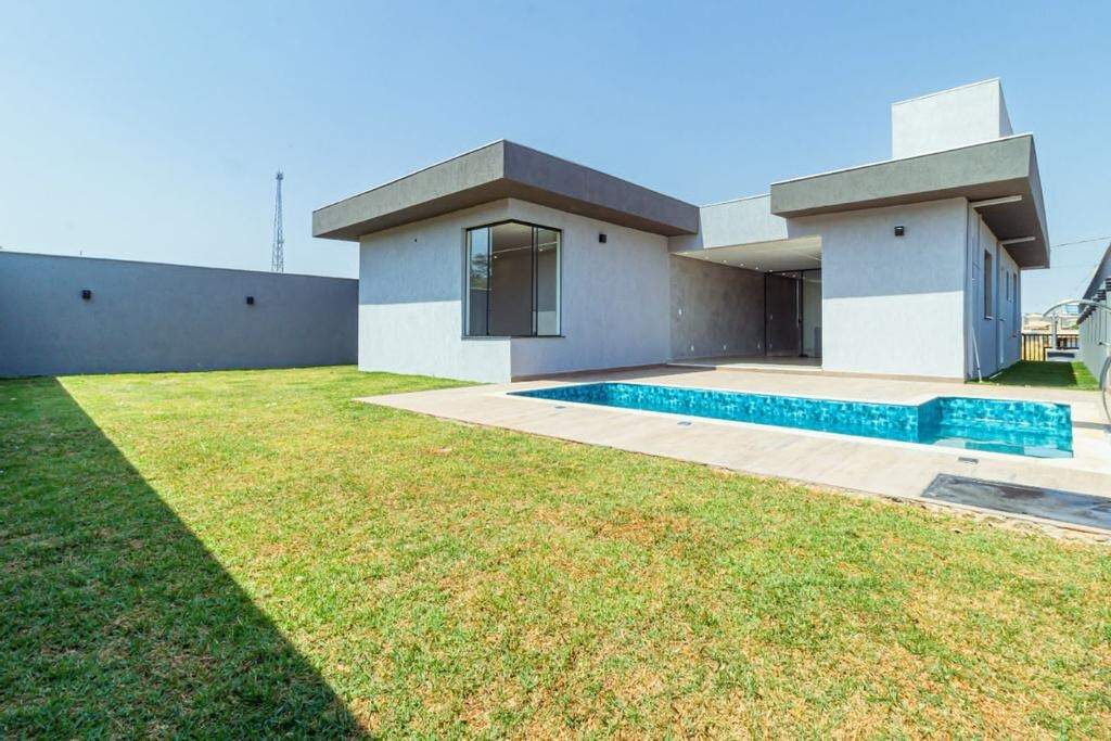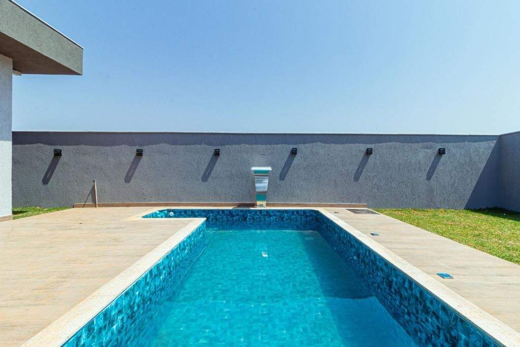 A área externa conta com uma piscina para momentos de lazer, além de uma área gramada perfeita para as crianças brincarem.