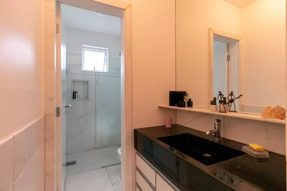 O piso é todo em mármore, garantindo sofisticação em todos os ambientes.