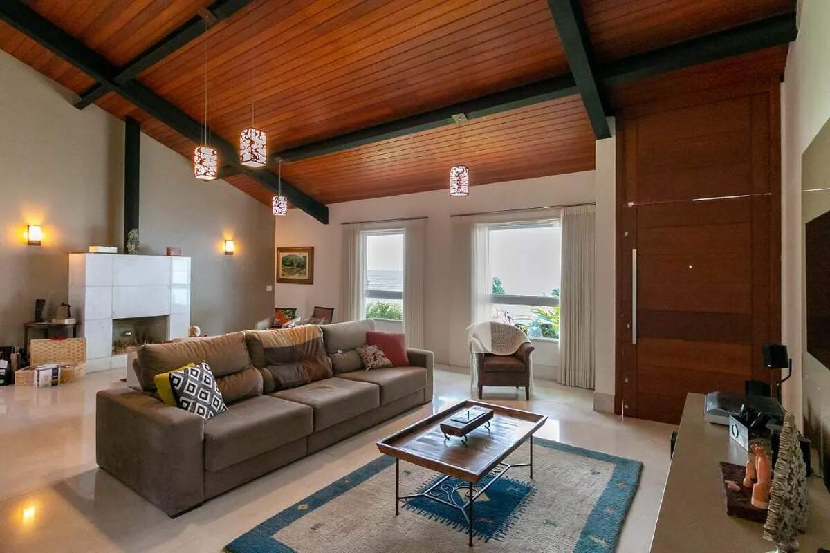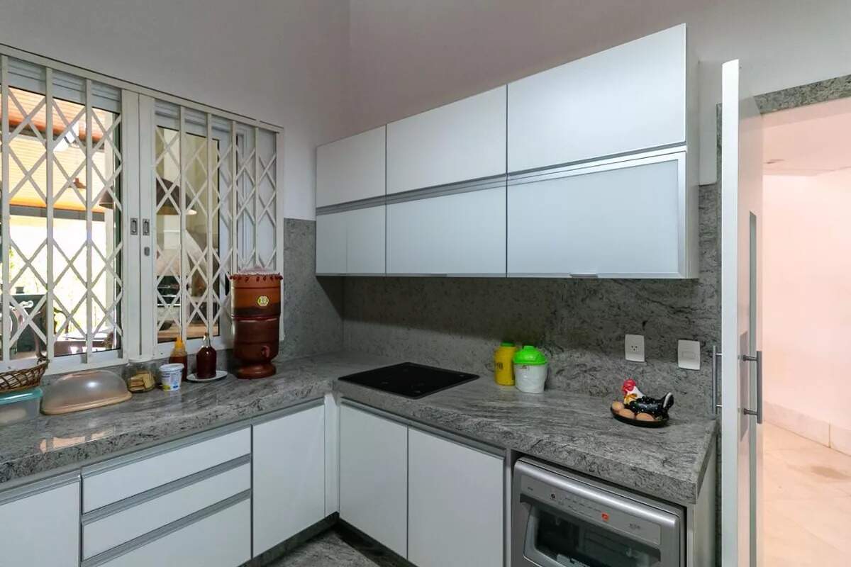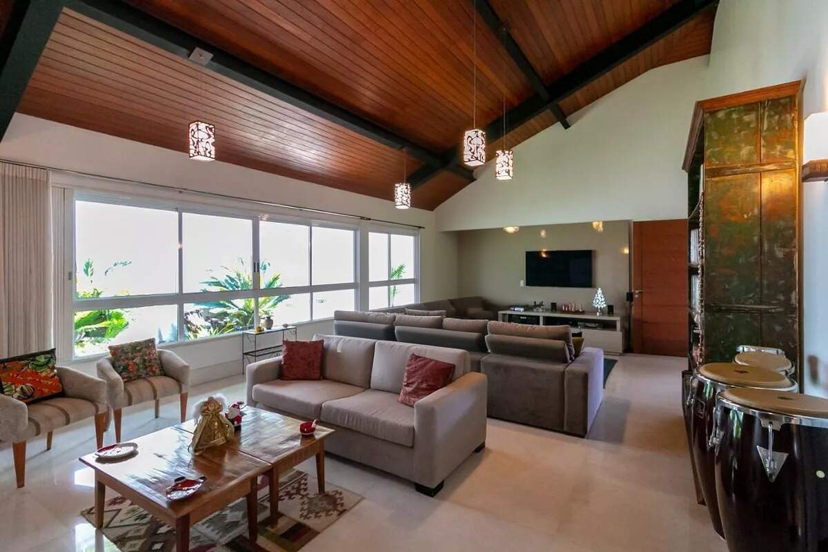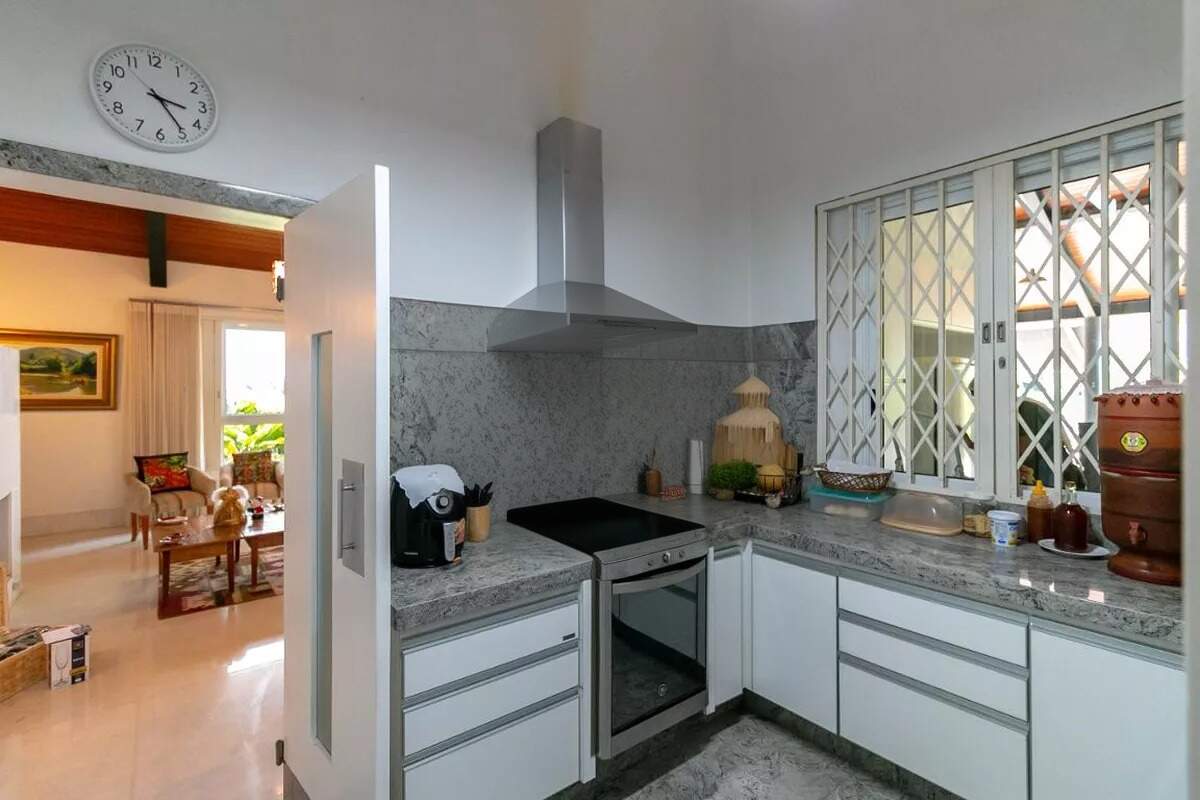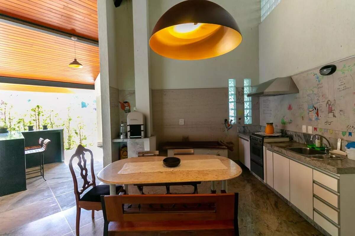 Com uma área construída de 638m², essa casa conta com 2 suítes, 3 banheiros, 3 dormitórios, sala de estar, sala de jantar, lavabo, área de serviço, cozinha americana, despensa, escritório e varanda.