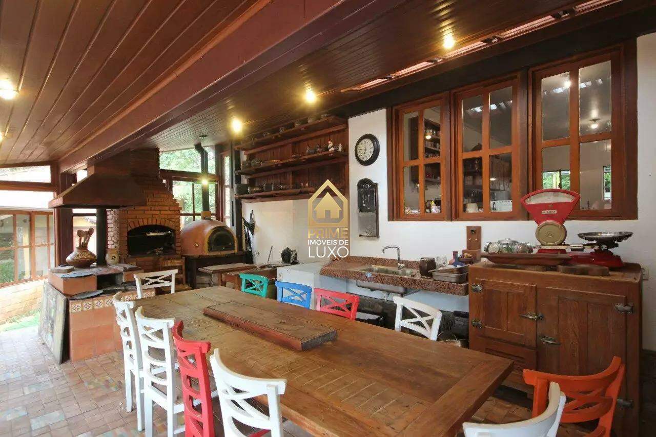 No piso principal, ampla sala com lareira, copa e cozinha com armários planejados, escritório, lavanderia e DCE. Cozinha gourmet com churrasqueira, forno de pizza e fogão a lenha.