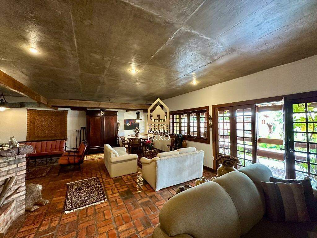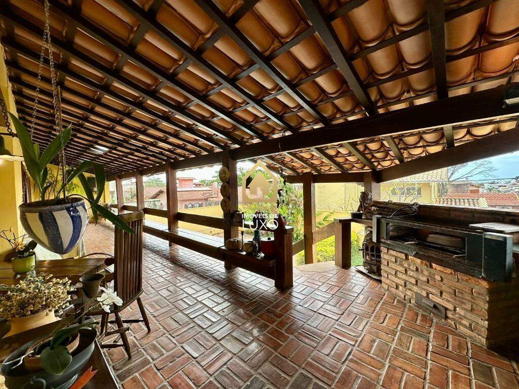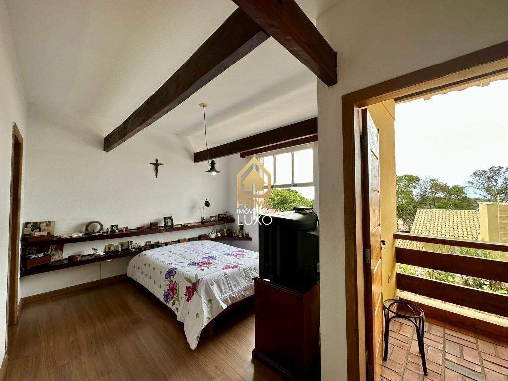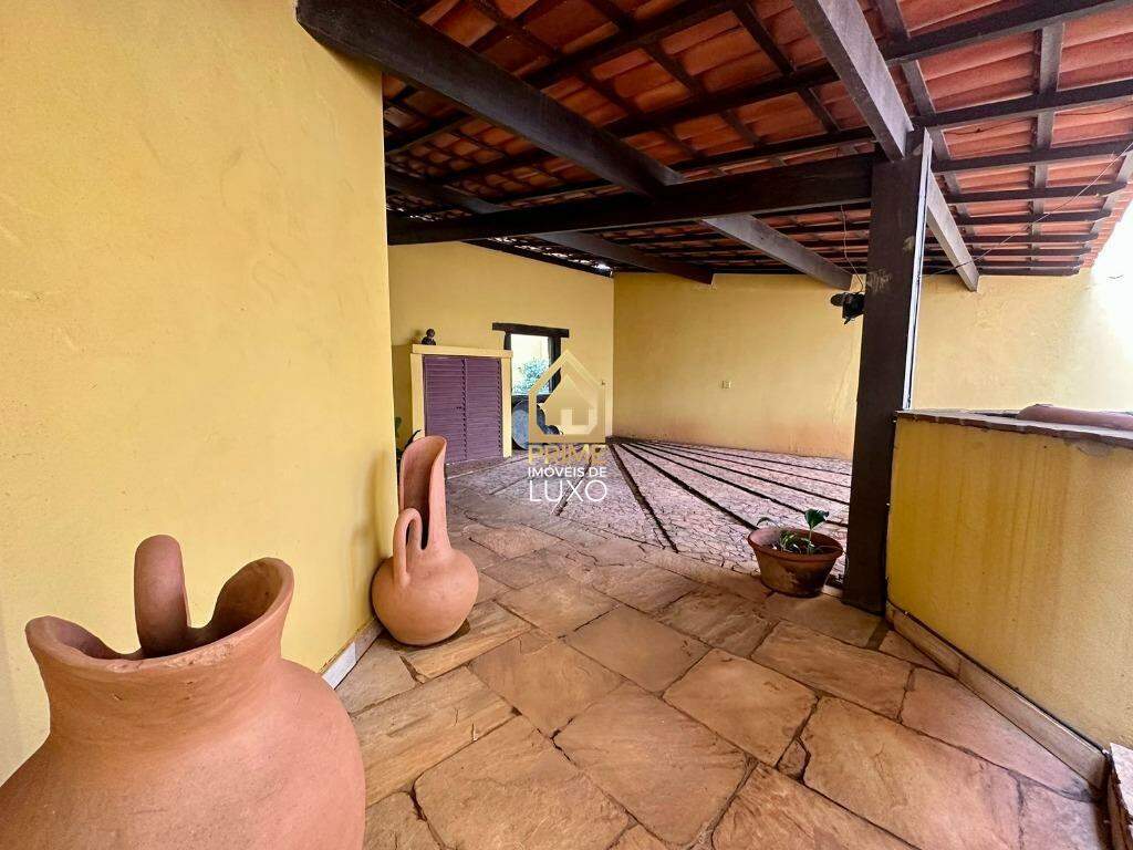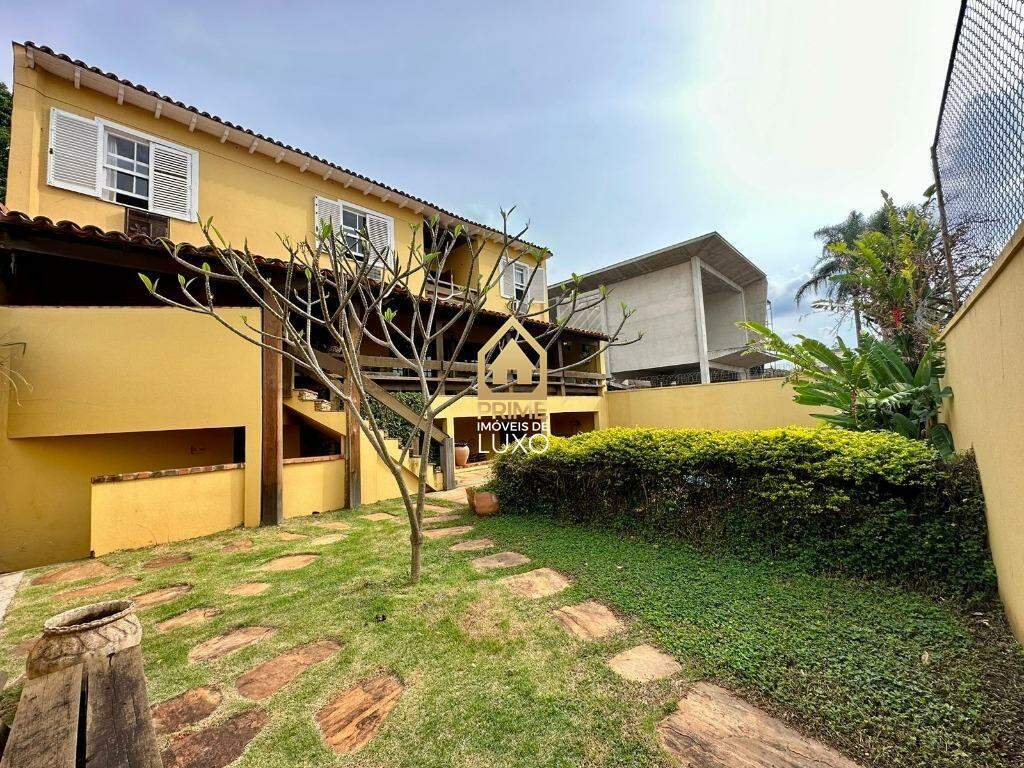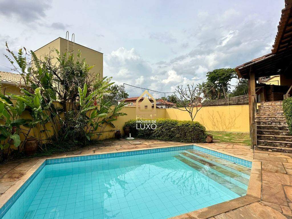 A casa possui 3 níveis e detalhes com pedras decorativas, janelas grandes de madeira, cômodos amplos e arejados.