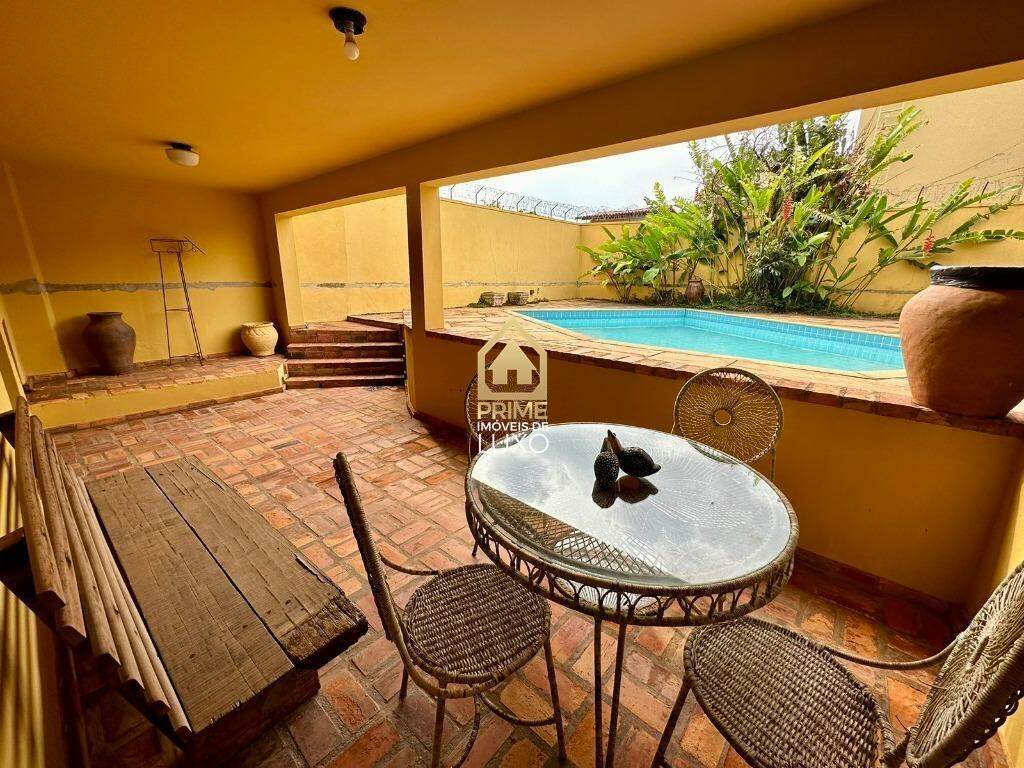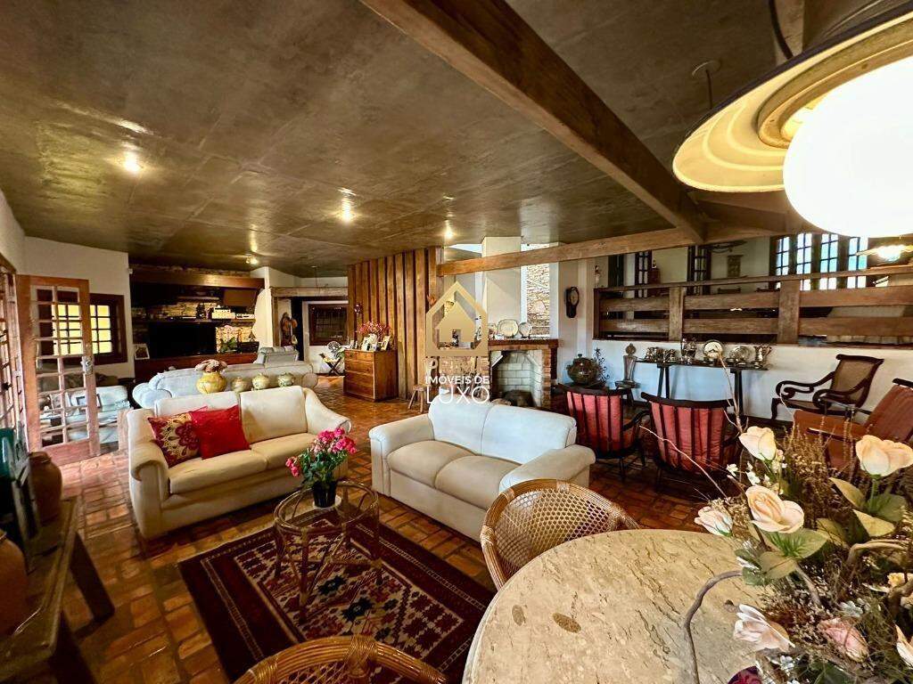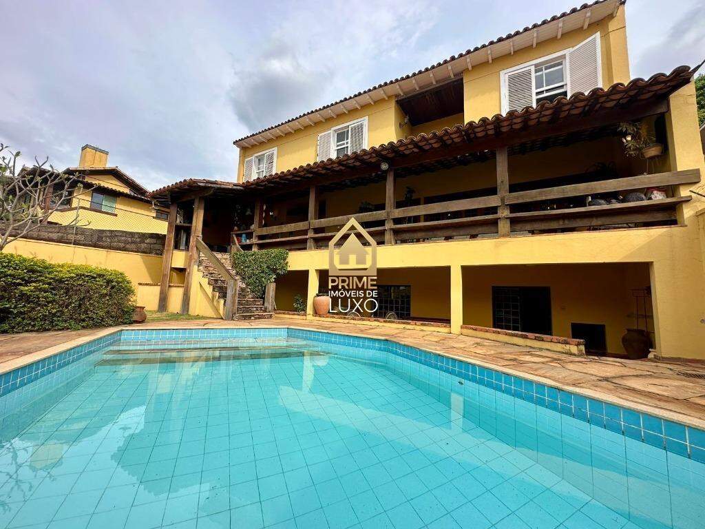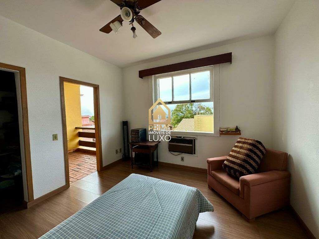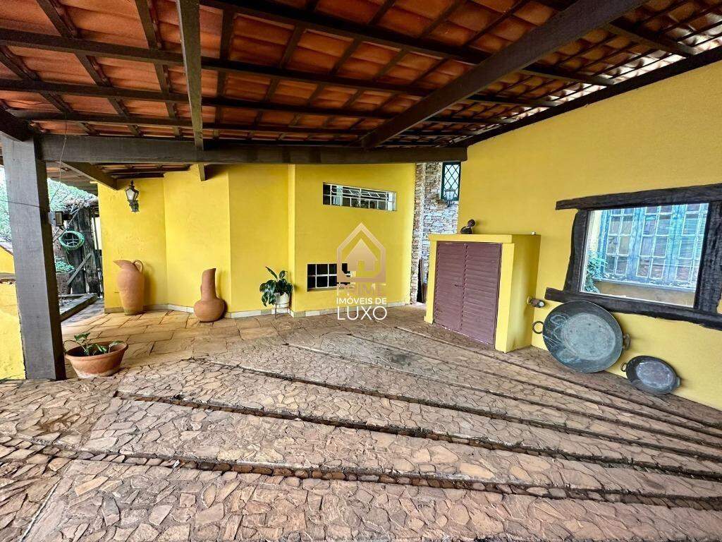 A casa possui 3 níveis e detalhes com pedras decorativas, janelas grandes de madeira, cômodos amplos e arejados.