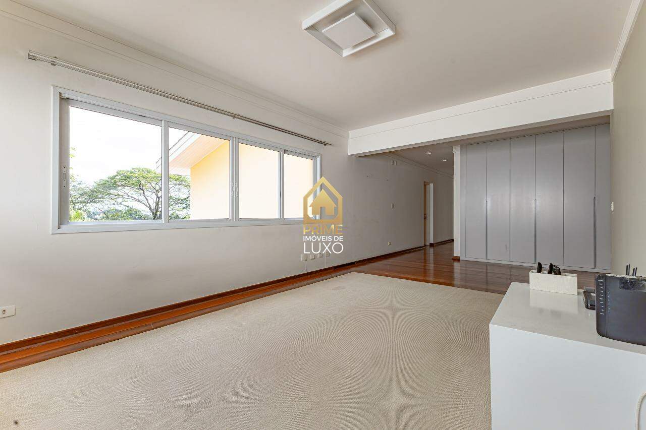 Na área íntima, encontram-se 4 amplas suítes com closet e uma enorme sala íntima. A propriedade ainda conta com espaço para academia completa, vestiário, ateliê, suíte para hóspedes, área de serviço, lavanderia e dependência de empregados.