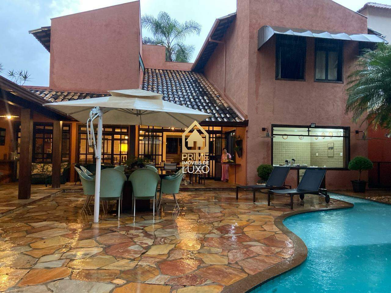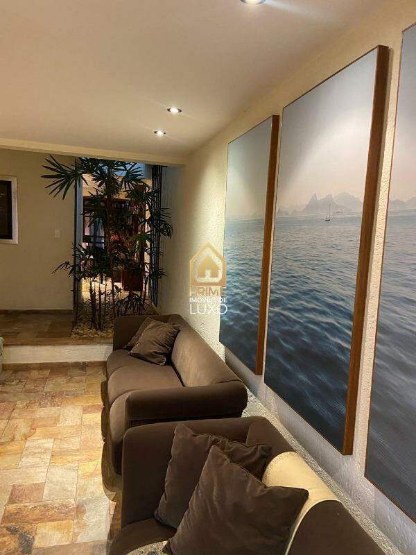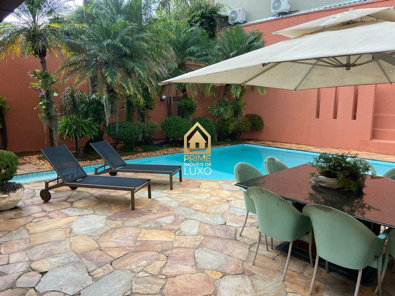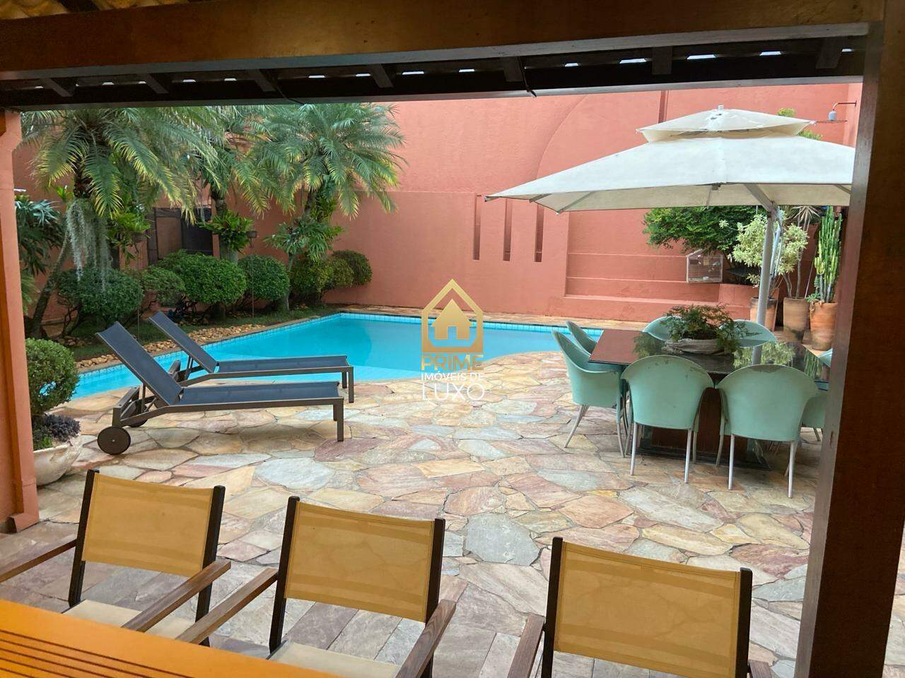 Área externa com espaço gourmet, piscina, sauna, banheiro, iluminação e jardinagem planejada.
