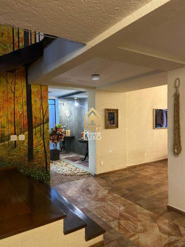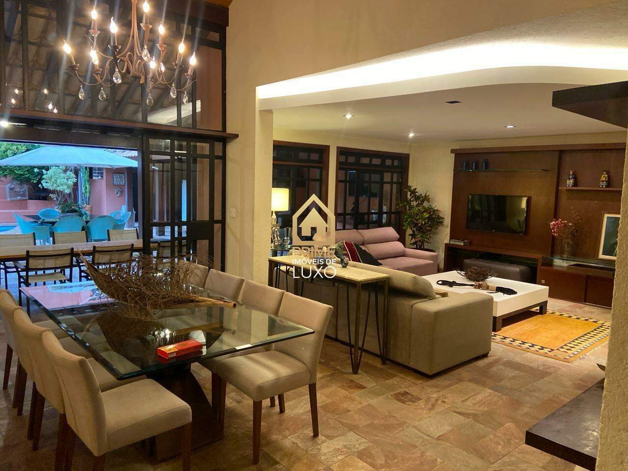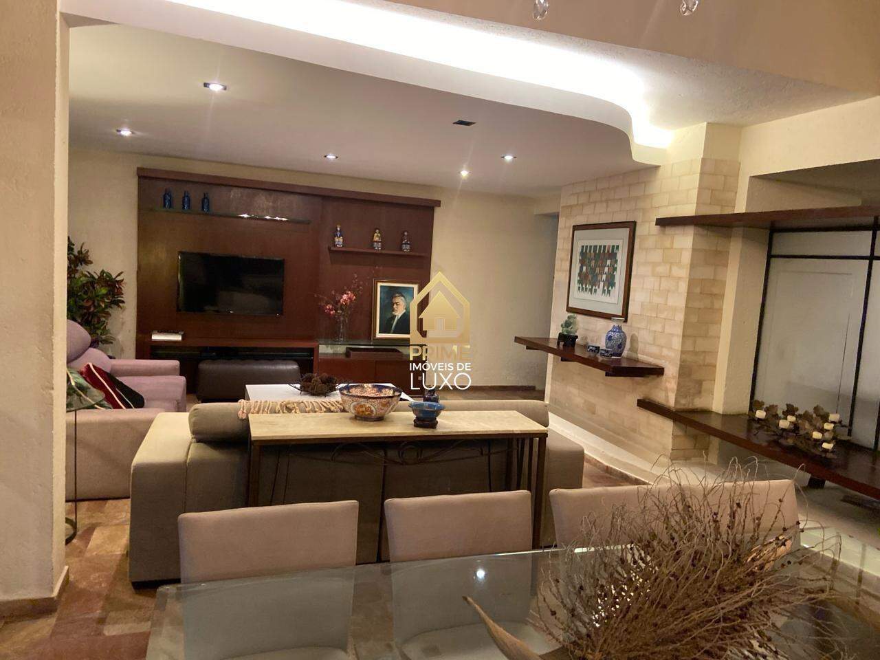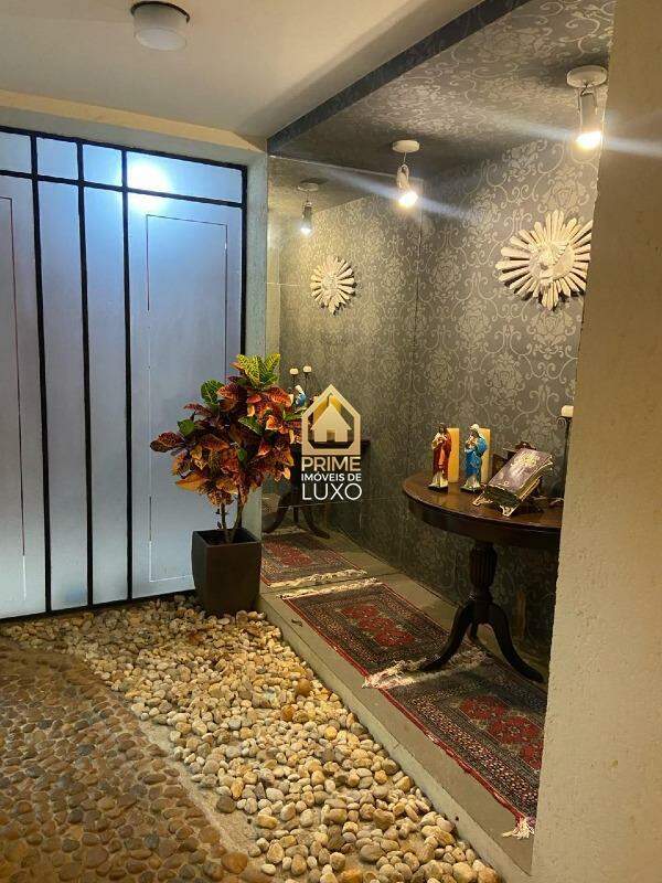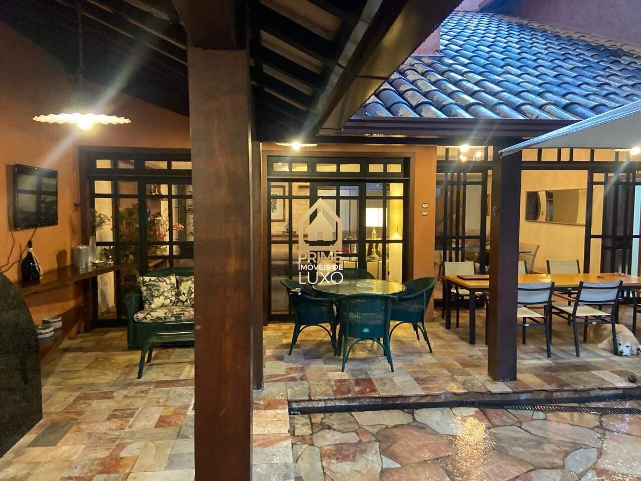 Área externa com espaço gourmet, piscina, sauna, banheiro, iluminação e jardinagem planejada.