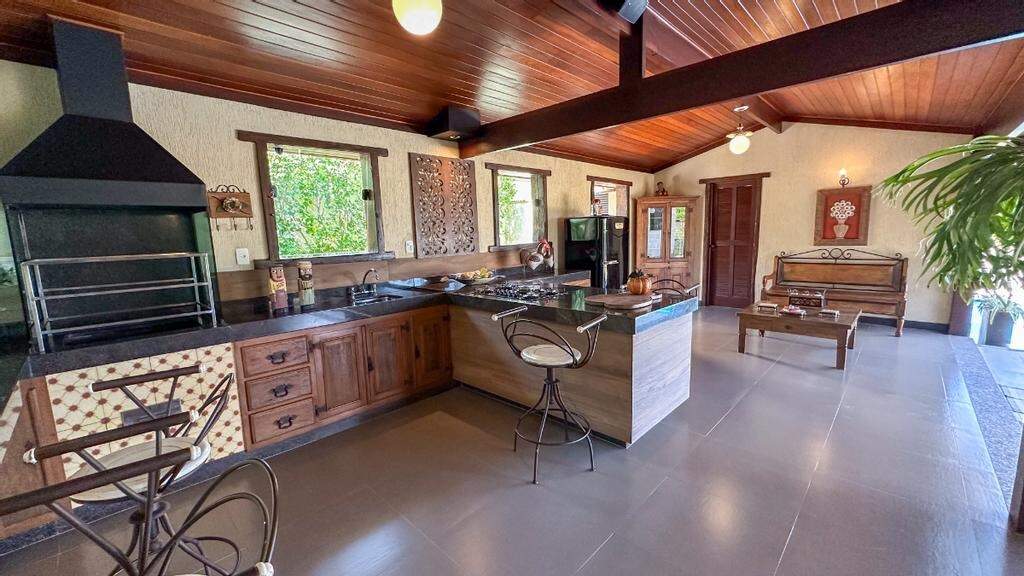 • Cozinha arejada com armários e integrada ao espaço gourmet