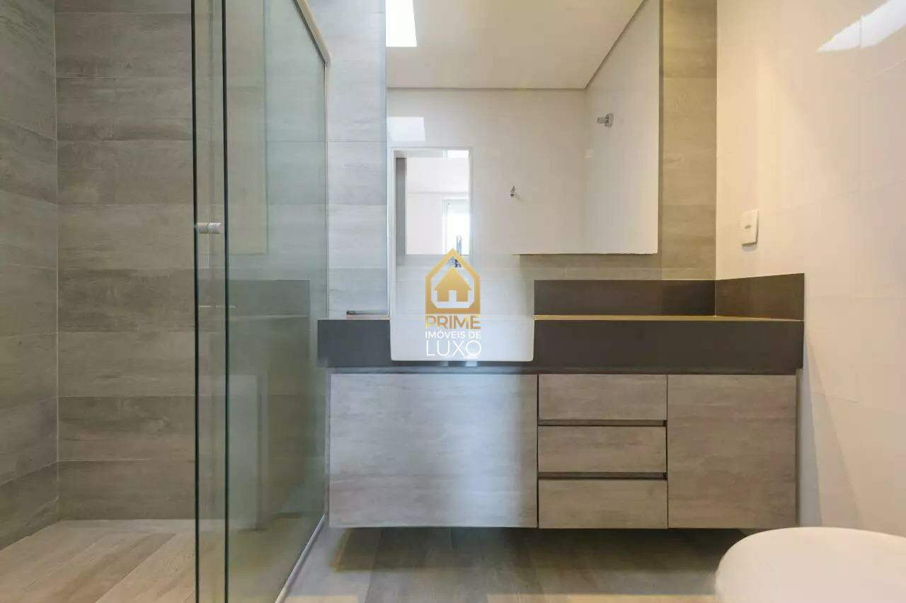 Com uma área construída de 459m², esta casa possui uma sala ampla com pé direito duplo, piso em mármore e lavabo. A cozinha é equipada e conta com espaço gourmet, despensa e área de serviço.