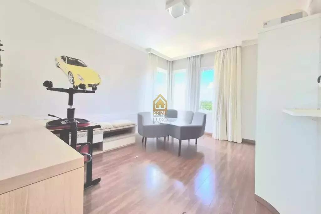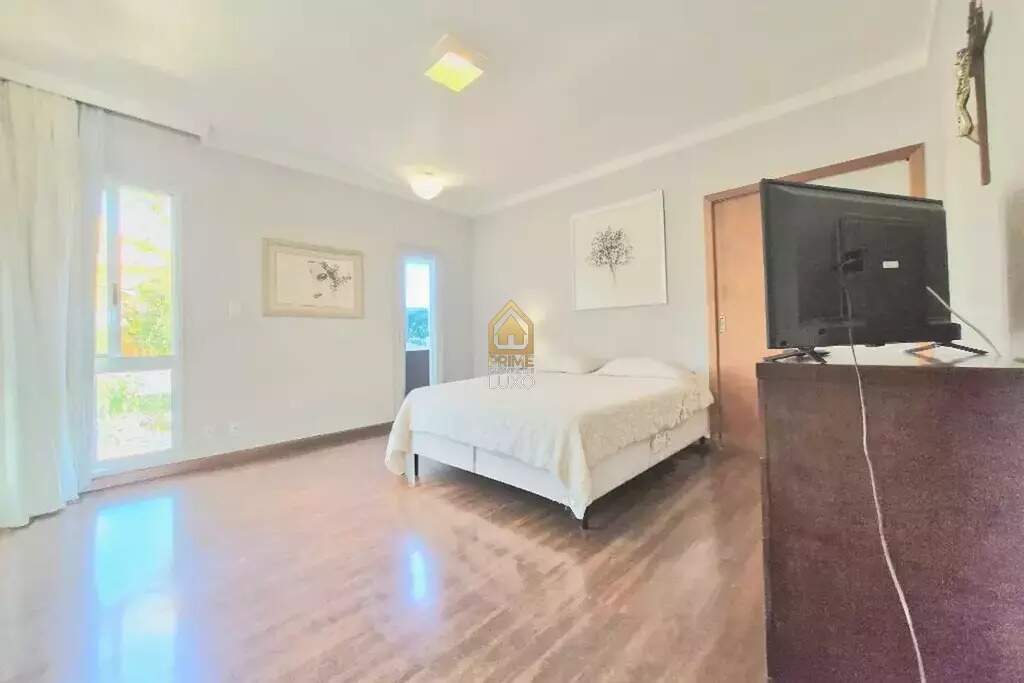 Com uma área construída de 343m², esta casa conta com 4 suítes, 4 banheiros, 4 dormitórios, sala de estar, sala de jantar, lavabo e escritório. Além disso, possui cozinha americana, despensa e área de serviço.