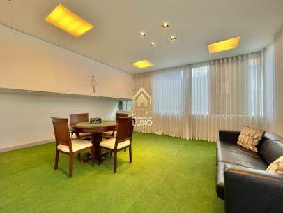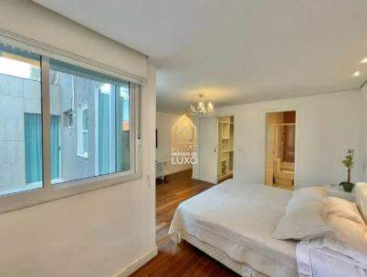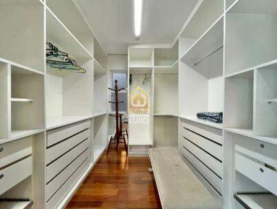 3ºAndar: Rouparia, suíte master com quarto auxiliar, closet espaçoso, banheiro amplo com hidromassagem, varanda, iluminação planejada. 02 suítes interligadas por varanda, todas com closet, ar condicionado, banheira, box, armários planejados, janelas com cortinas e persianas externas.