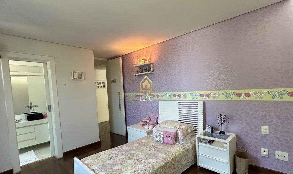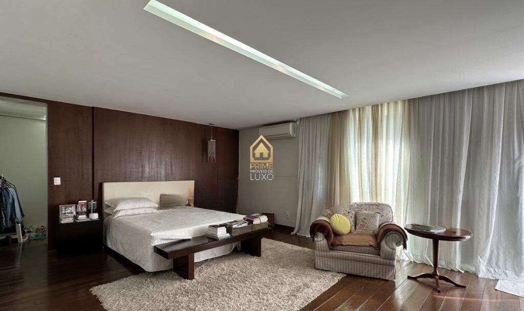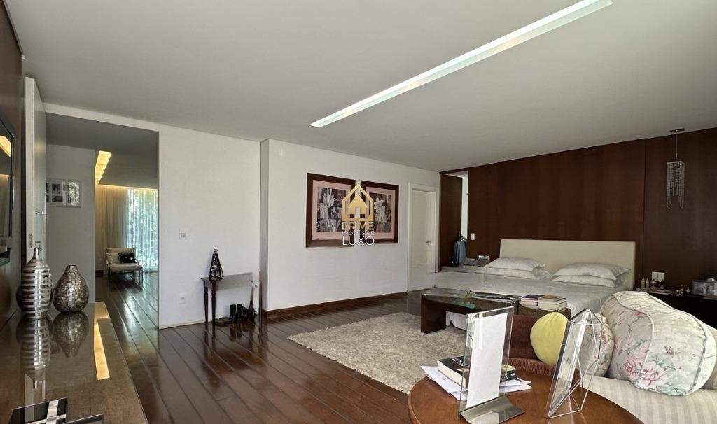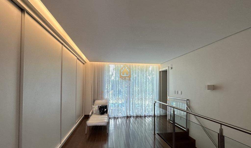 Ampla residência com 524m² de área construída, 4 dormitórios, sendo todos suítes, a suíte master conta com closet e varanda ampla • Ambiente para 4 salas • Lavabo • Cozinha • Lavanderia • DCE completo • Pé direito duplo • Mezanino • Projeto luminotécnico • Escritório • 4 vagas de garagem Área de lazer da casa: • Piscina aquecida • Espaço gourmet completo com churrasqueira • Quadra de beach tênis • Lindo projeto paisagístico