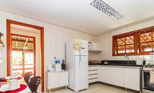 Casa de 02 pavimentos, com 04 quartos sendo 01 suíte, todos com armários e 01 quarto com sacada; sala ampla com 04 ambientes; lavabo; cozinha tipo americana com armários; área de serviço; banhos com armários e box; varanda em U com ambientes de convivência.