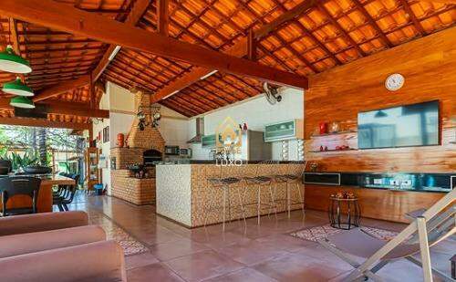 Área externa: com espaço gourmet com churrasqueira, fogão a lenha; cozinha de apoio; vestiários feminino e masculino; academia e espaço de jogos; campinho de futebol gramado; spa para 08 pessoas; piscina com cascata; uma linda capelinha.