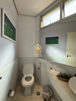 Com uma área construída de 470m², essa casa possui 5 suítes, 7 banheiros, 5 dormitórios, sala de estar, sala de jantar, lavabo, área de serviço, dormitório de empregada, banheiro de serviço, cozinha americana, despensa, varanda e muito mais.