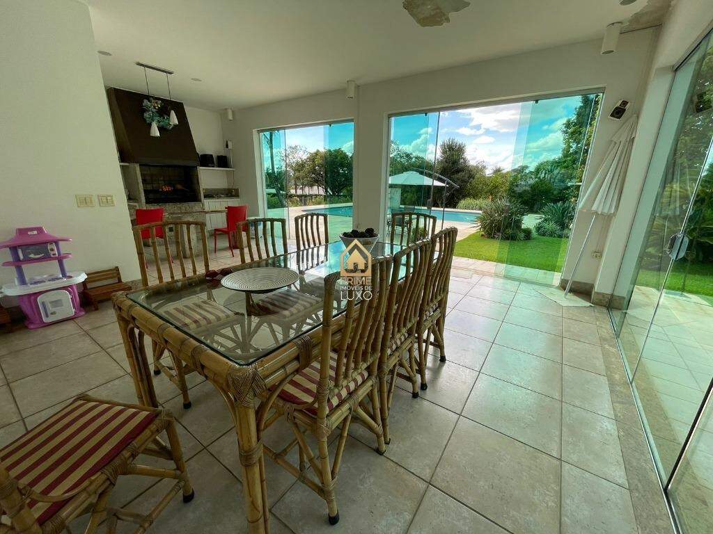 • 600m2 de área construídas • Lote de 5000m2 • Piscina • Sauna • Pomar • Casa de caseiro • Lago • 6 quartos sendo 2 suítes • 4 Banheiros • DCE • 3 Vagas cobertas • 10 vagas descobertas • Home Cinema • Salão de Jogos • Churrasqueira • Quartos em madeira de peroba • Aquecimento solar • Irrigação em todo o terreno • 4 Dispensas • Lavabo • Diversos ambientes espaçosos • Ármários planejados em diversos cômodos • Pergolado e lago Localizada em um condomínio de alto padrão, conta com uma excelente infraestrutura, com brinquedoteca, quadra de tênis, sala fitness e outras opções de lazer. E para o seu conforto e segurança possui sistema de circuito interno de TV, portão eletrônico e portaria 24h.