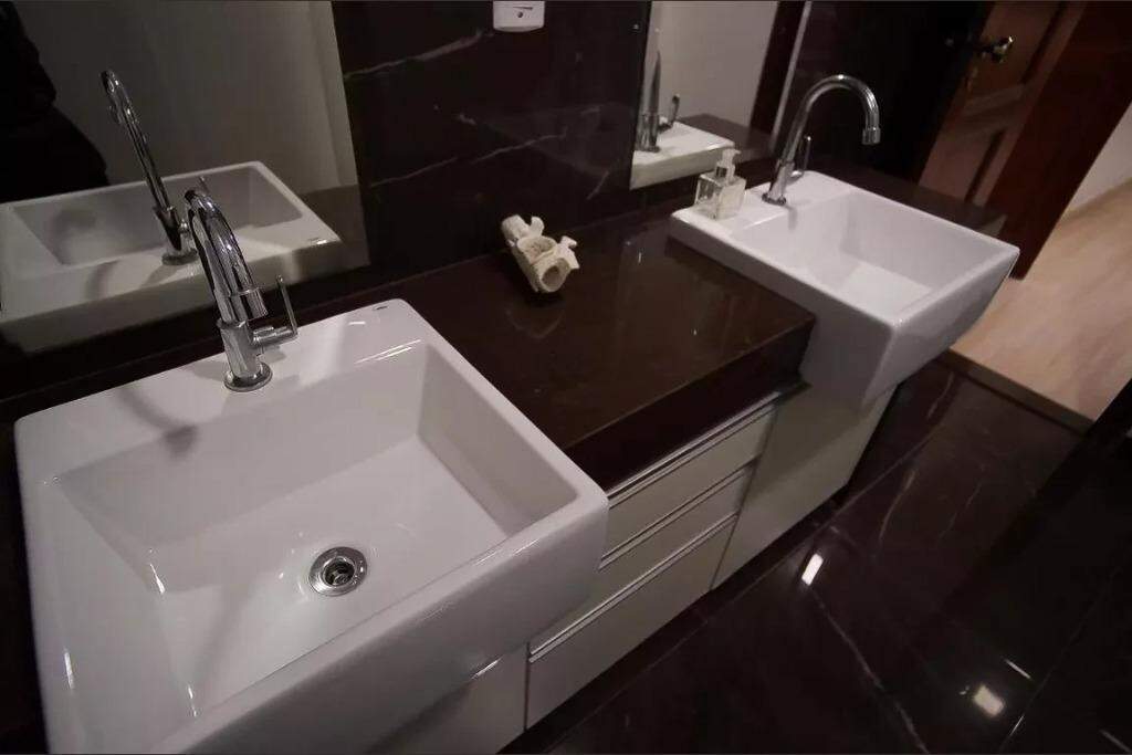 A casa possui acabamentos em cerâmica, granito, laminado e porcelanato. Possui armários na área de serviço, banheiros, cozinha e dormitórios.