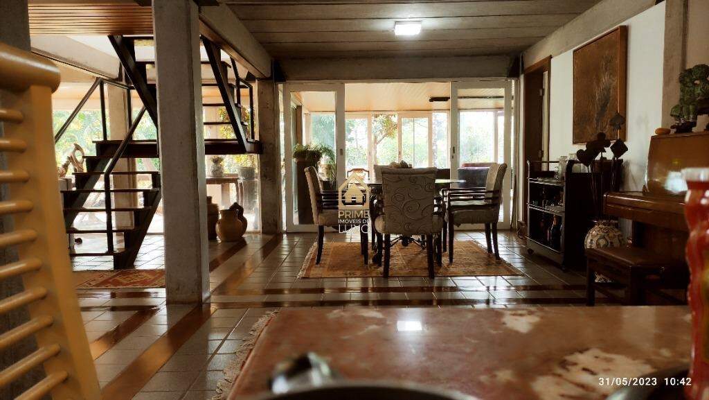 Venda de luxuosa casa em Lagoa Santa! Com área construída de 690m², essa magnífica casa possui 3 banheiros sociais, 7 dormitórios (sendo 2 suítes e 2 semi-suítes), dormitório reversível e hidromassagem. Além disso, ela conta com lavabo, isolamento frontal e posicionada nos fundos. O imóvel também dispõe de áreas de serviço, dormitório e banheiro para empregados, copa, cozinha americana, despensa, lavanderia, escritório e varanda. Para momentos de lazer com familiares e amigos, a residência oferece 3 salas de estar e 2 salas de jantar. O estacionamento é mais que suficiente: comporta aproximadamente 10 vagas descobertas! A casa está em localização privilegiada: cercada pela natureza! Seu isolamento é perfeito para quem busca privacidade e tranquilidade. O posicionamento solar é na parte da manhã. E para sua comodidade a casa possui aquecedor solar, depósito, energia elétrica fornecida pela CEMIG e esgoto ligado à prefeitura. Você terá a disposição um jardim para relaxar nos momentos de descanso em meio à exuberante natureza que cerca o imóvel. Os momentos gourmet serão inesquecíveis na área gourmet com cozinha integrada! Além disso tudo que a casa já oferece, você terá acesso a piscina infantil para crianças se divertirem enquanto os pais aproveitam a sauna, Piscina e o espaço gourmet. A quadra poliesportiva estará disponível para seus filhos brincarem com segurança e sob suas vistas. Está incluso ainda na área de lazer, uma DCE construída ao lado da casa quarto e banheiro e uma casa adicional completa para serviço ou mesmo hóspedes 2 quartos, cozinha e banheiro construída ao fundo do terreno! E na área externa, você encontrará um pomar. Você irá se apaixonar pelos detalhes: Piso em cerâmica, estrutura em concreto aparente, granito, tábua e porcelanato. A casa possui armários nos dormitórios, corredores e salas. Agende agora sua visita e encante-se com essa incrível residência!