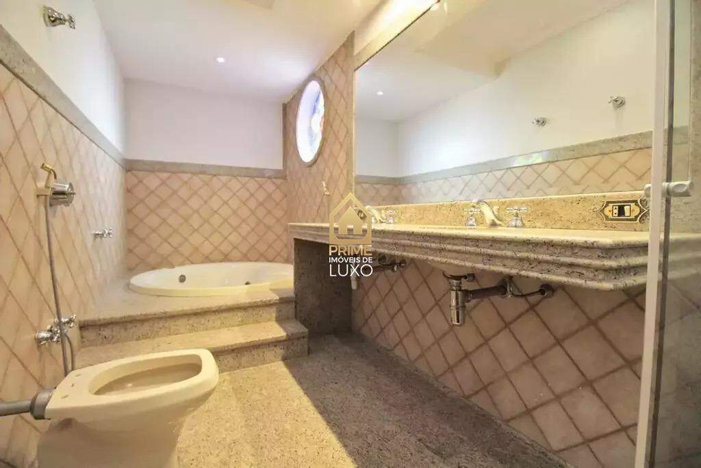 Casa espaçosa com área construída de 500m², contendo uma sala com piso em granito, 6 quartos (sendo 3 suítes), 5 banheiros, ar condicionado, armários na cozinha, banheiros e quartos, box no banheiro, DCE (Dormitório completo de empregada), varanda, quintal, sol da manhã, área de serviço, piscina e portão eletrônico.