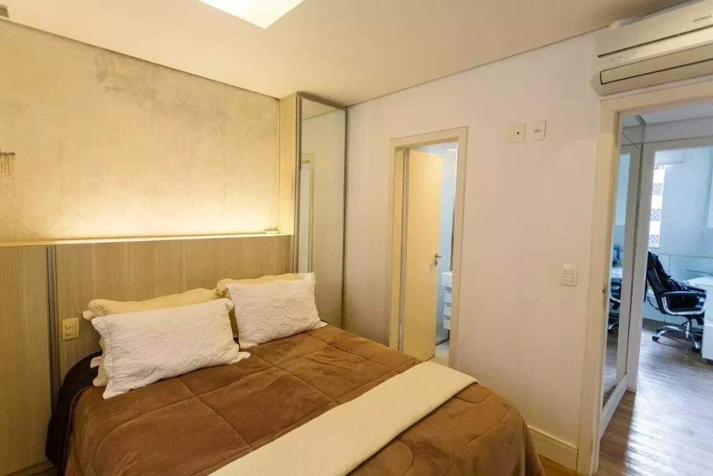 03 Quartos com armários e piso em laminado, sendo 01 suíte com armário, espelho e box em vidro temperado