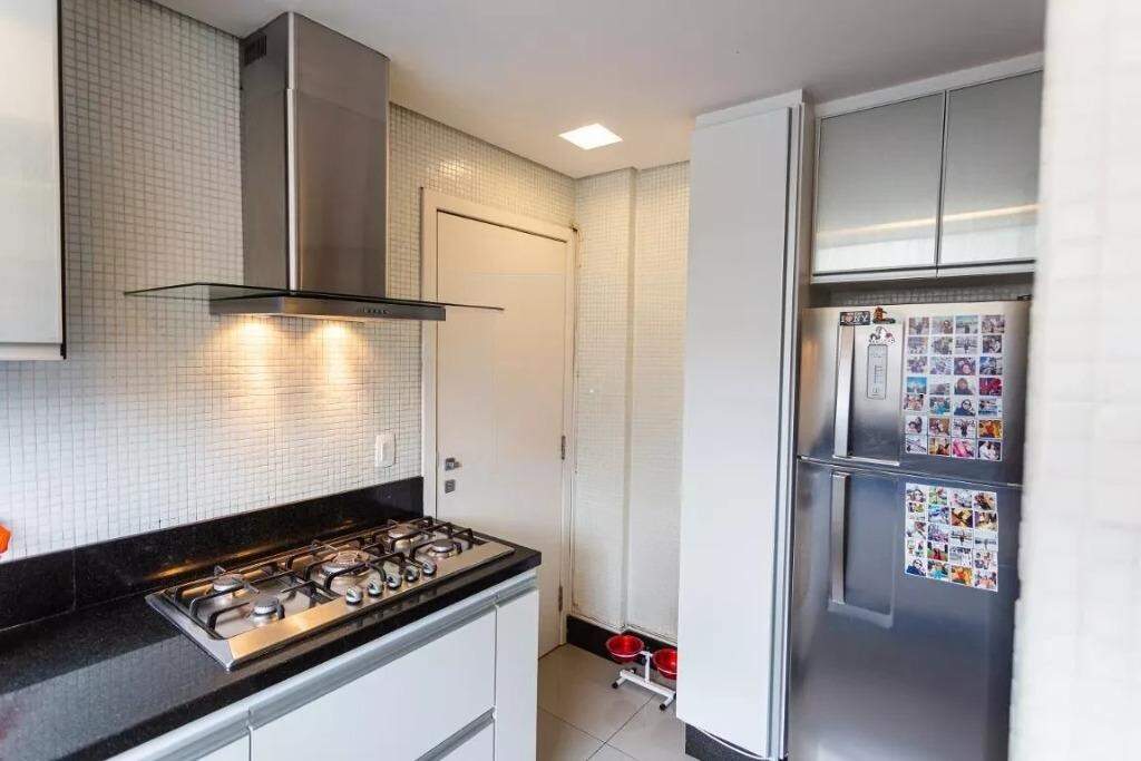 Cozinha com armários e bancada em granito com piso em porcelanato