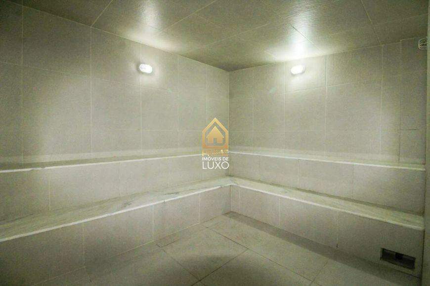 No 2º piso, uma sala para 2 ambientes com teto rebaixado e iluminação planejada, mais uma suíte. O espaço gourmet decorado inclui um spa com jacuzzi e uma vista deslumbrante da cidade.