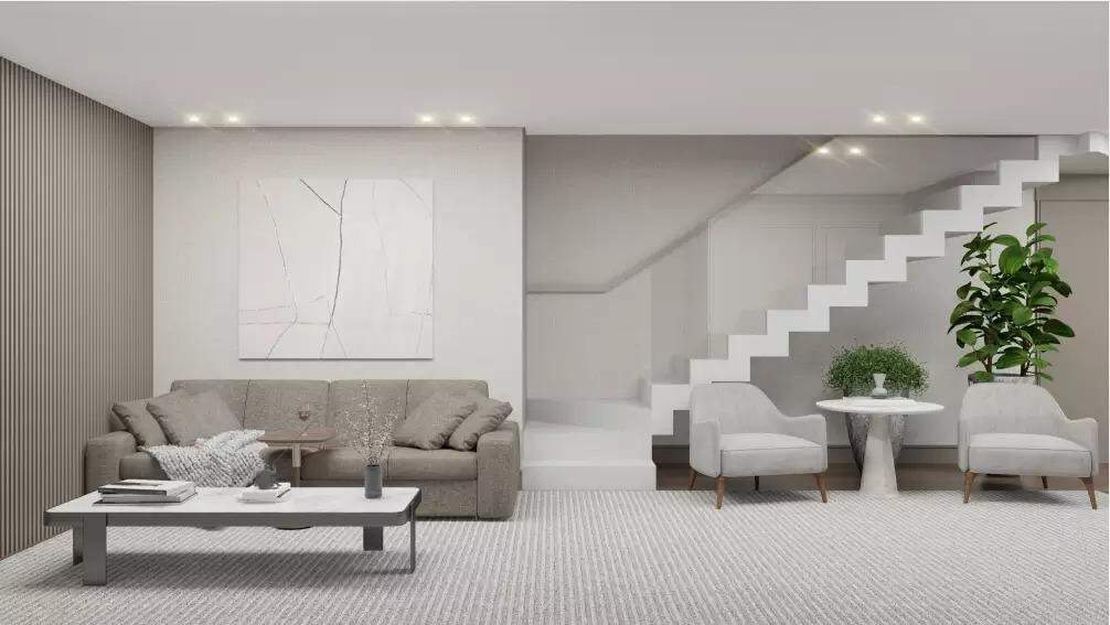 O elevador dá acesso aos dois pavimentos e possui 3 vagas de garagens, com carregamento de carros elétricos.