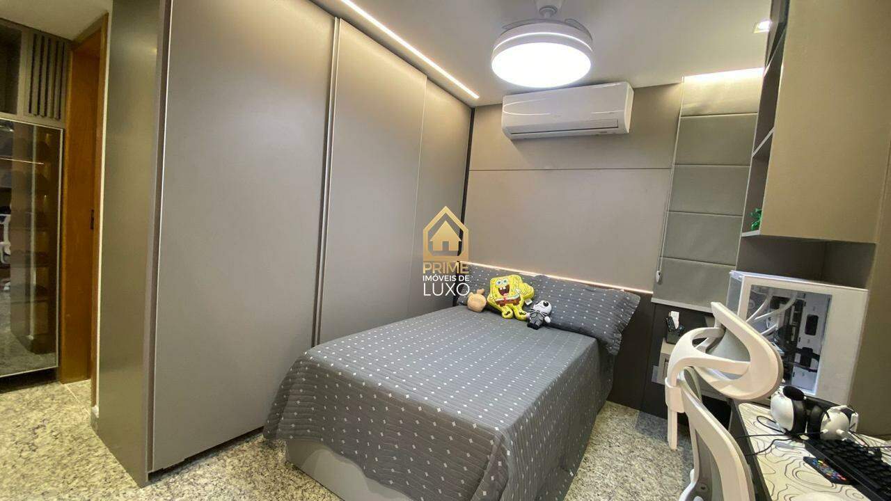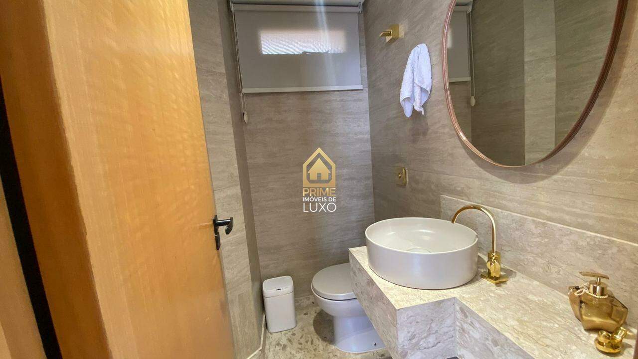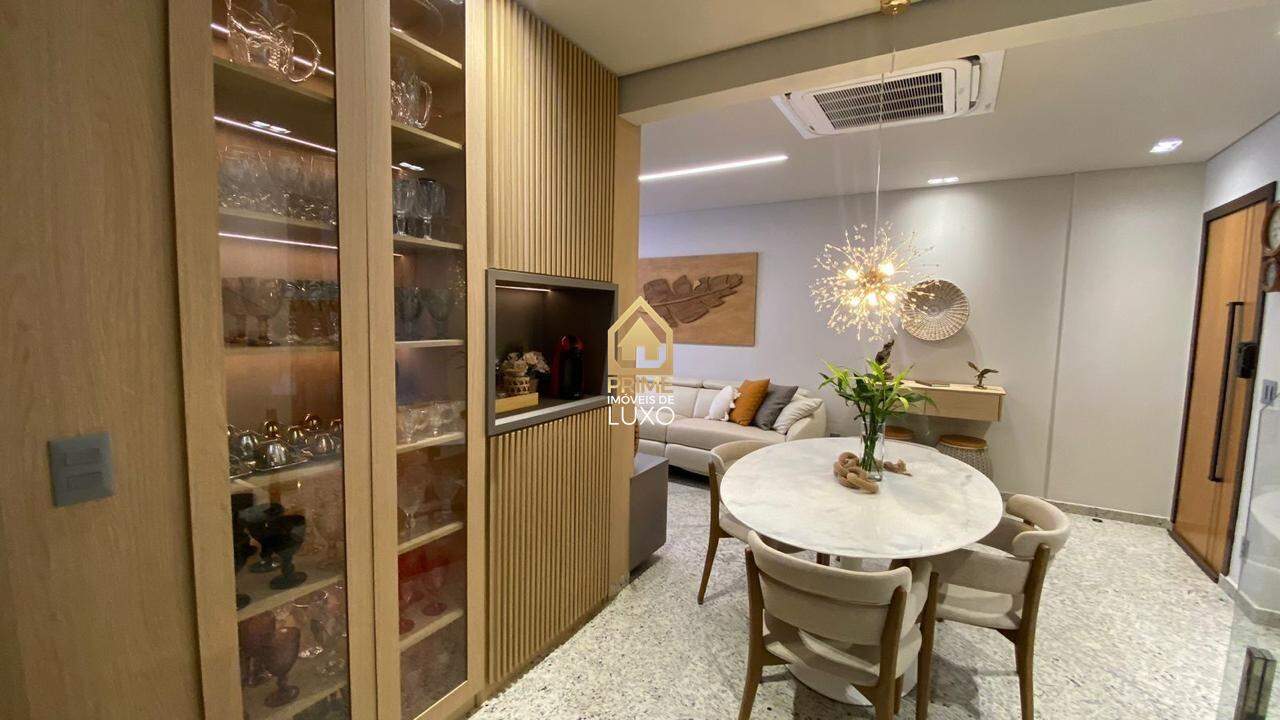 Com acabamento em quartzito e porcelanato, o imóvel possui 5 quartos, sendo 3 suítes com ar condicionado e armários planejados, sala ampla em L, espaço gourmet com jacuzzi, além de um quarto de hóspedes.