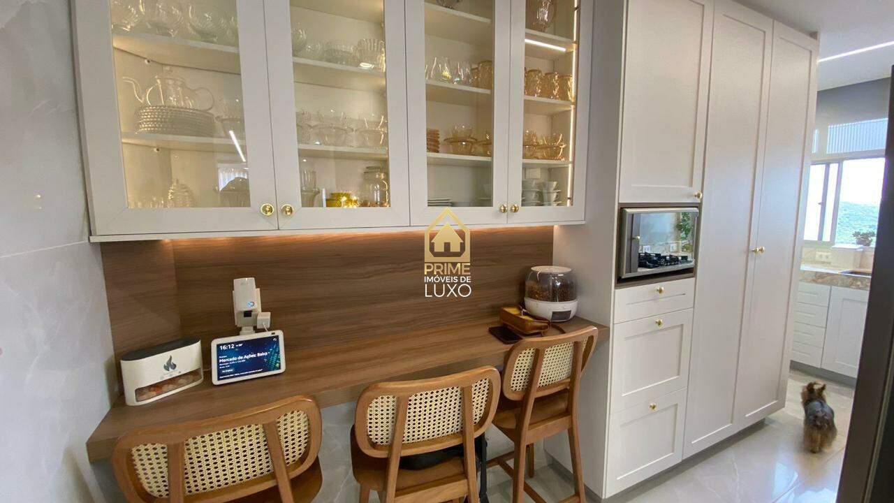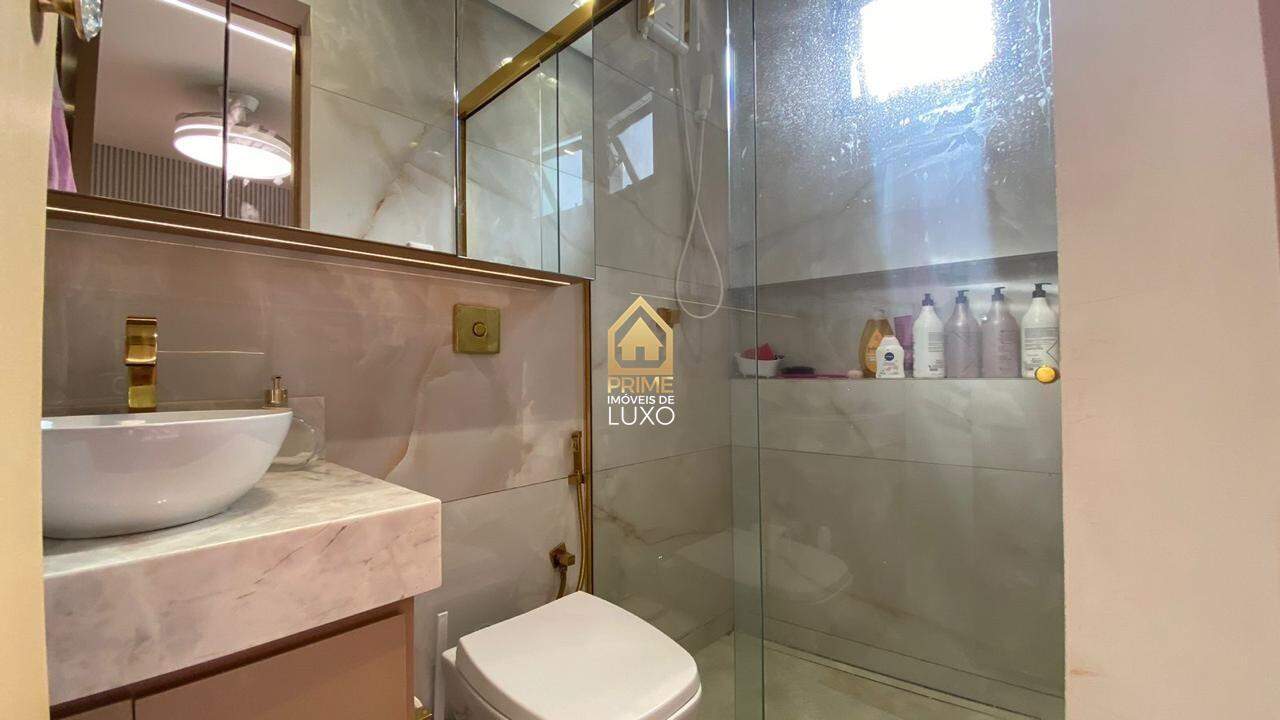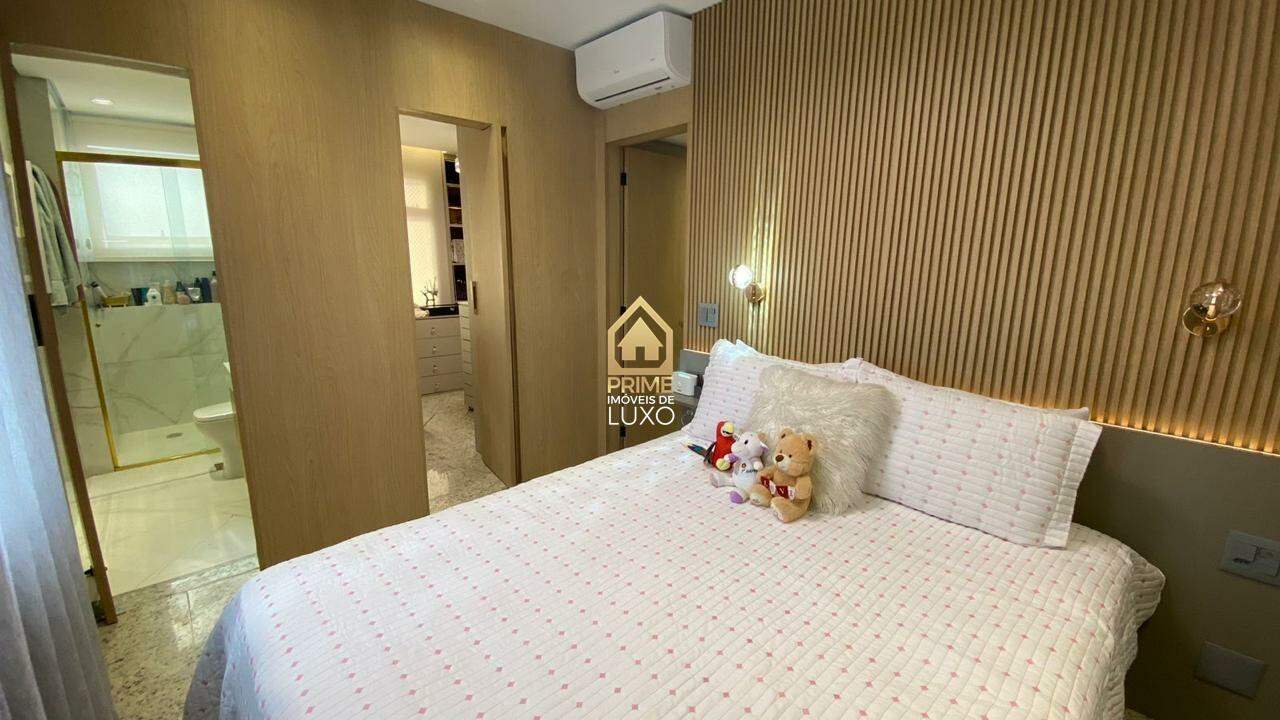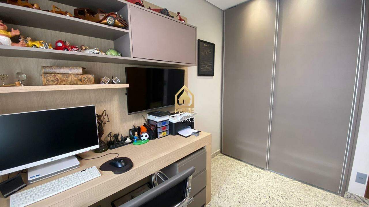 Com acabamento em quartzito e porcelanato, o imóvel possui 5 quartos, sendo 3 suítes com ar condicionado e armários planejados, sala ampla em L, espaço gourmet com jacuzzi, além de um quarto de hóspedes.