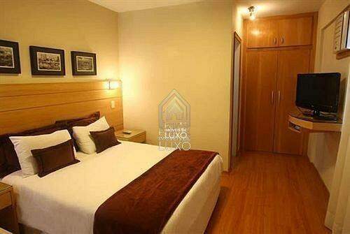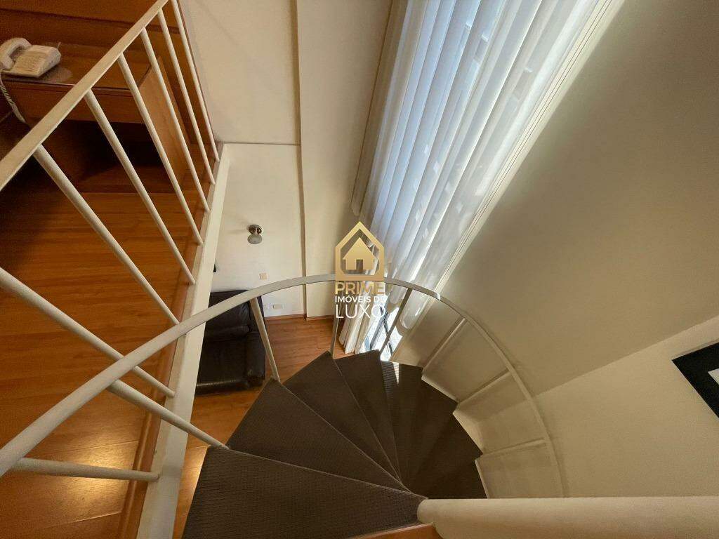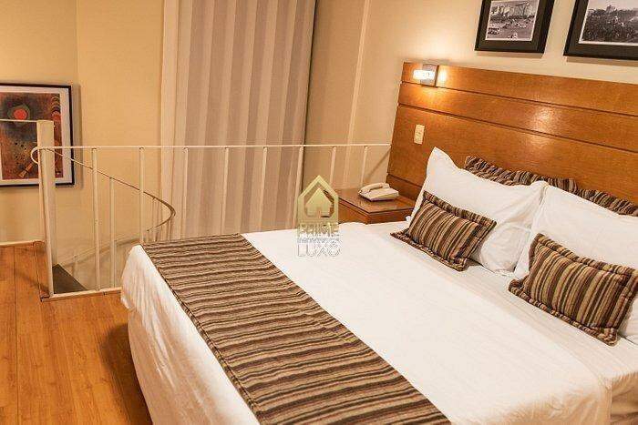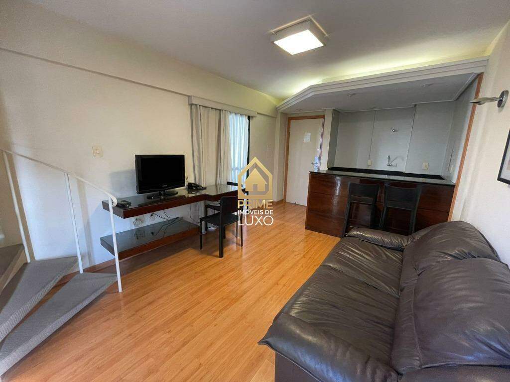 Prédio -Consumo de água incluso no condomínio, apartamento com mobília, academia, sauna e piscina . Apartamento duplex com 40 m², no 1 andar possui sala com sofá, televisão, cozinha americana, 2 andar possui quarto suíte com cama, armários e televisão.