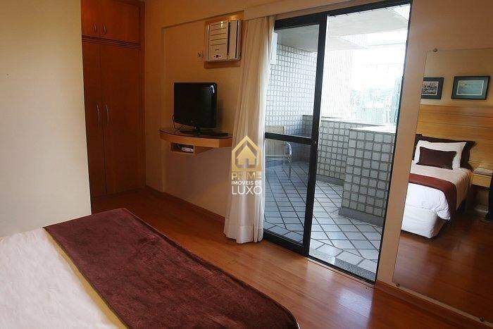 Prédio -Consumo de água incluso no condomínio, apartamento com mobília, academia, sauna e piscina . Apartamento duplex com 40 m², no 1 andar possui sala com sofá, televisão, cozinha americana, 2 andar possui quarto suíte com cama, armários e televisão.