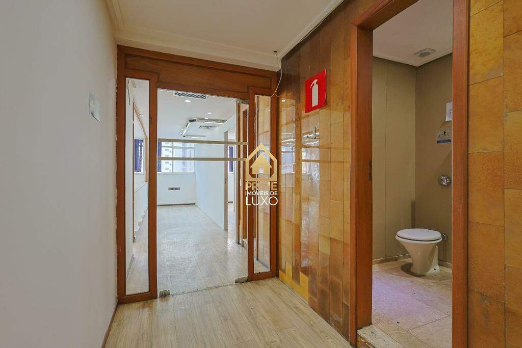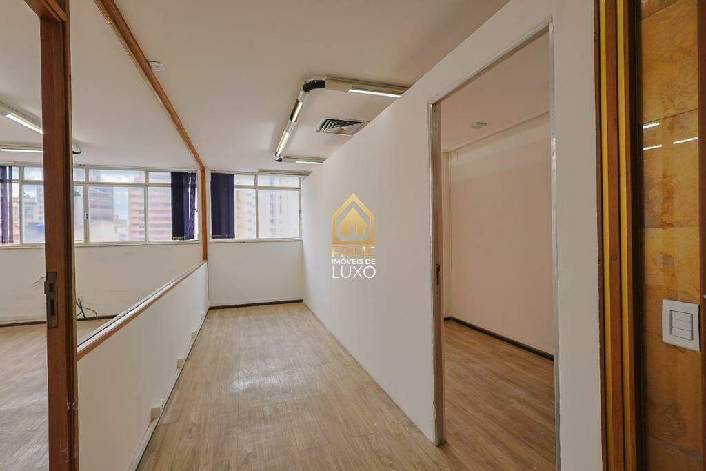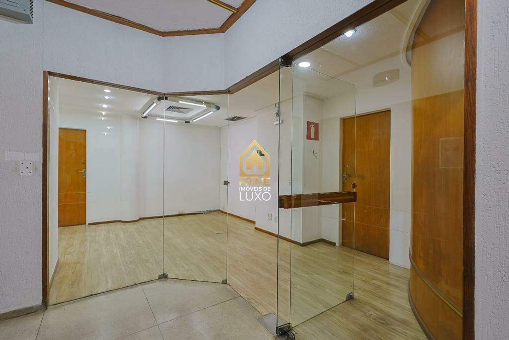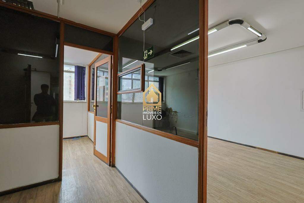 Conjunto comercial com aproximadamente 250m², composto por três salas bem distribuídas. O espaço conta com piso vinílico, divisórias funcionais, sala de reunião e sala para almoxarifado, oferecendo praticidade para diferentes atividades corporativas.